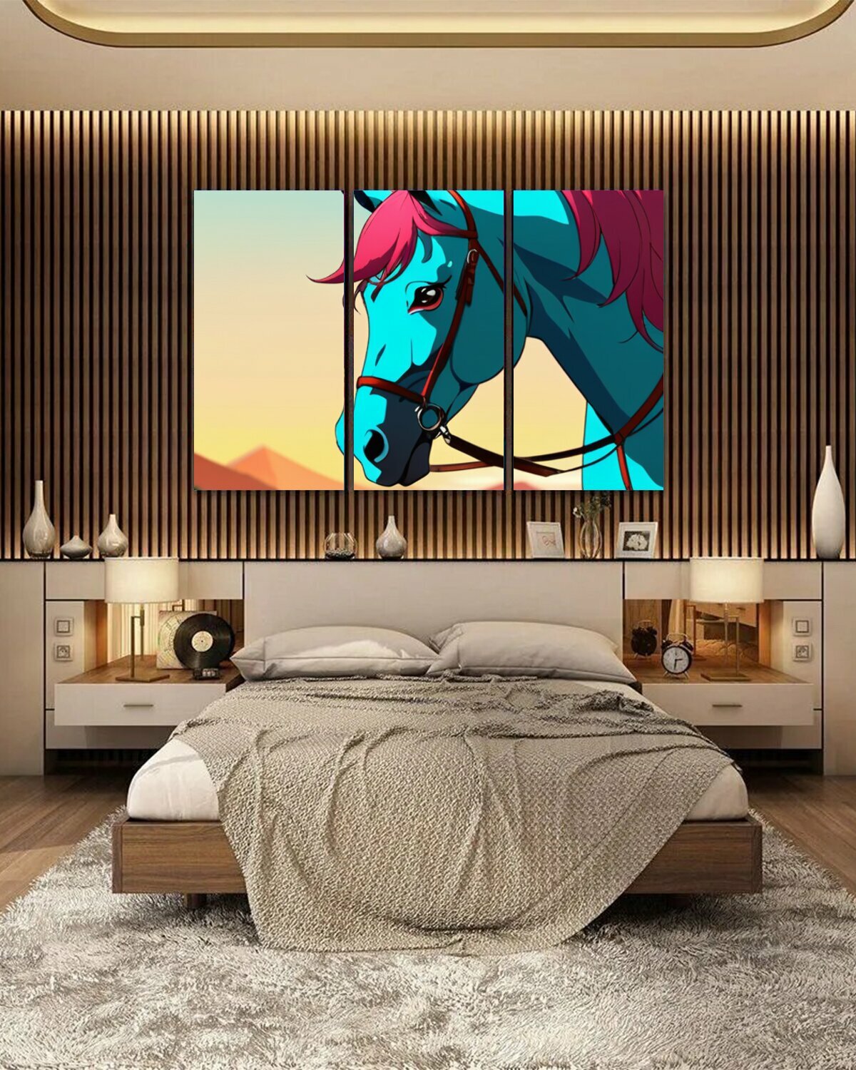 Модульная картина на ОСП В детскую комнату "Животные, звери, конь минимализм" 188x125 см. 3 части для интерьера на стену информация: