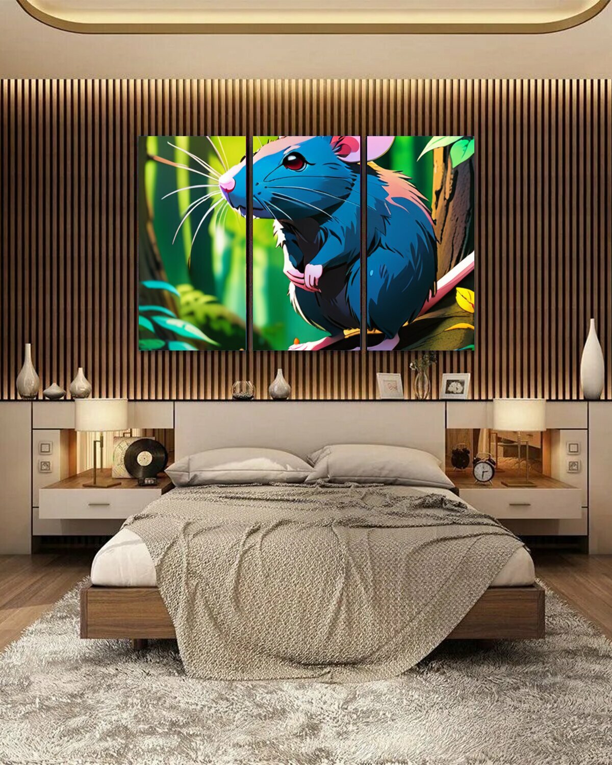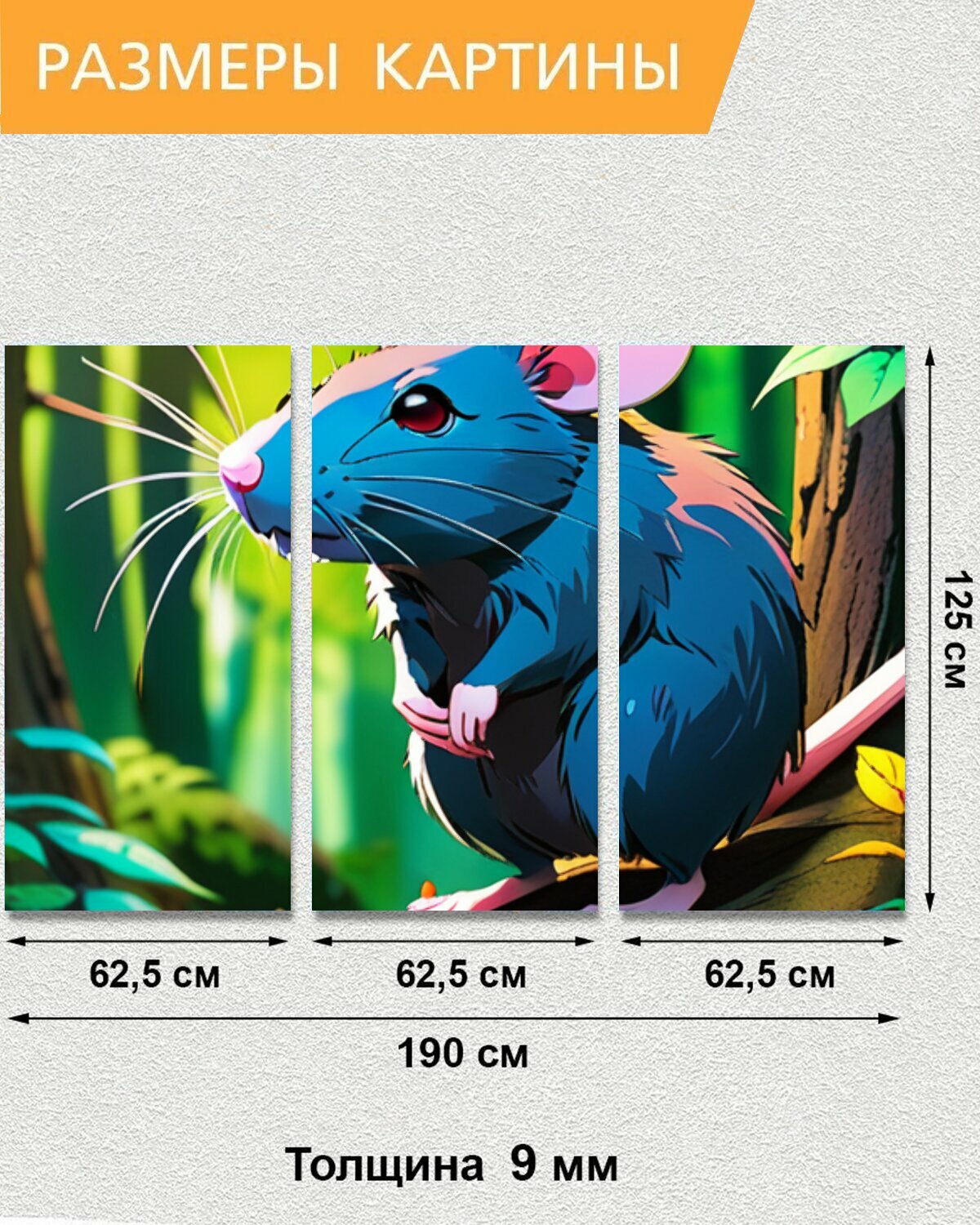 Отзывы на Модульная картина на ОСП В детскую комнату "Животные, звери, крыса в лесу" 188x125 см. 3 части для интерьера на стену