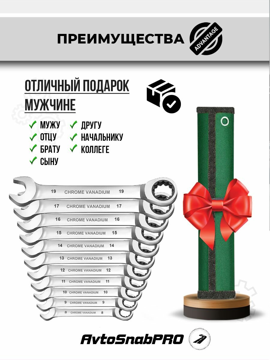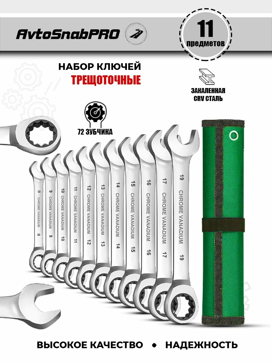 Набор инструментов ключей гаечных комбинированных трещоточных 11 предметов в мягкой сумке информация: