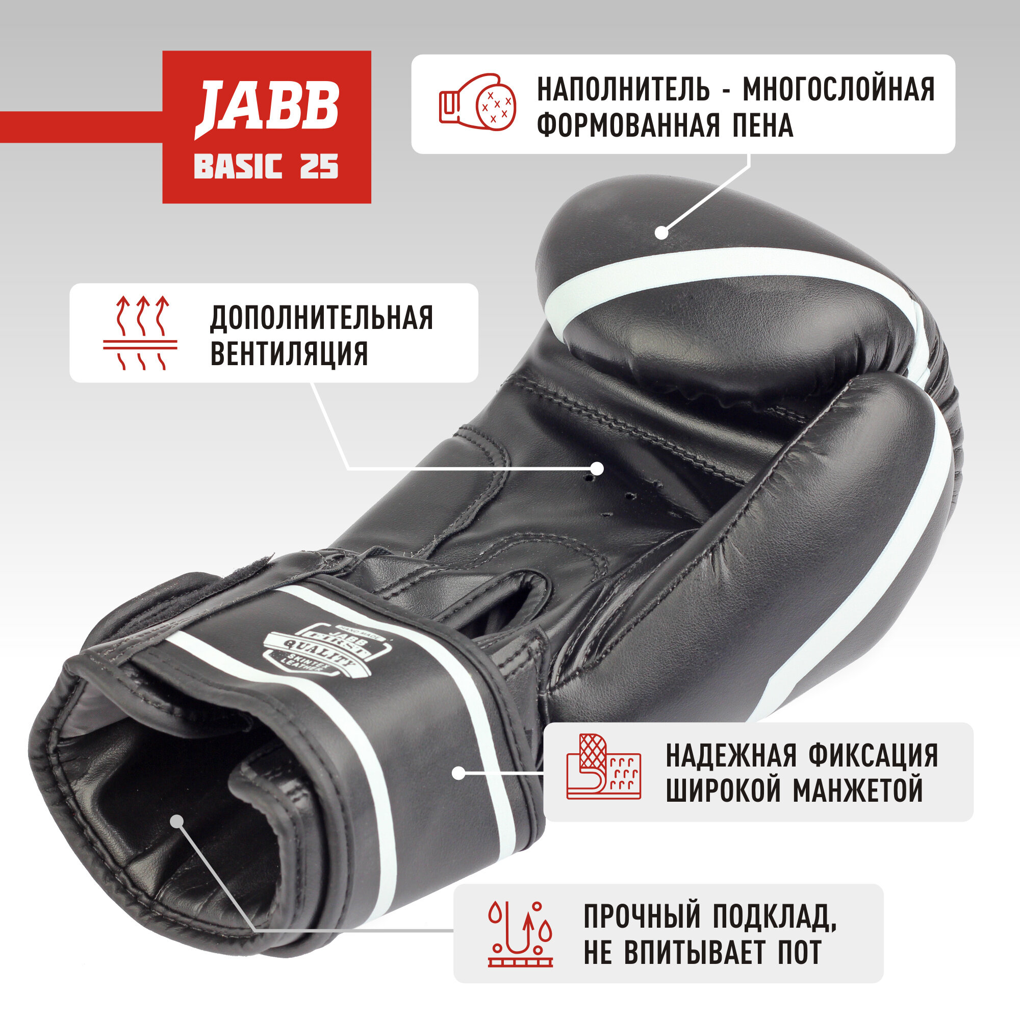 Jabb Перчатки бокс.(иск.кожа) je-2015/basic 25 черный 6ун 4690222172713 3 580 ₽