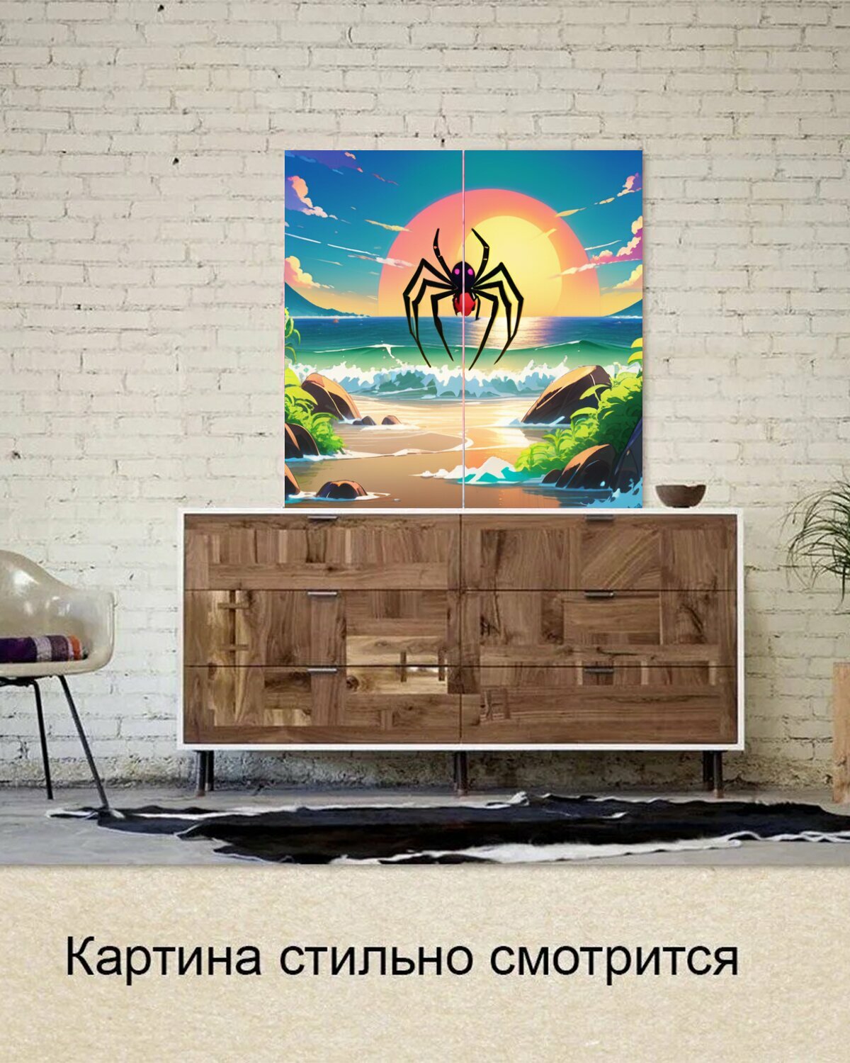 Отзывы на Модульная картина на ОСП В детскую комнату "Животные, звери, паук на море" 125x125 см. 2 части для интерьера на стену