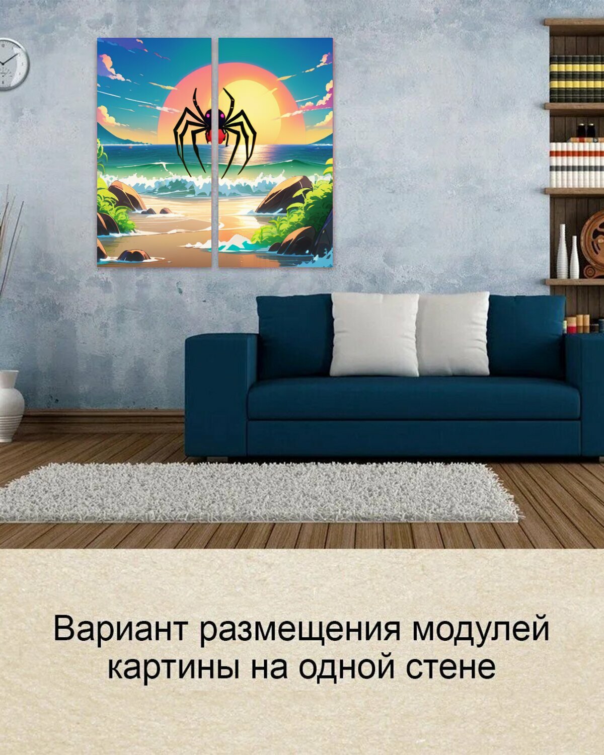 Модульная картина на ОСП В детскую комнату "Животные, звери, паук на море" 125x125 см. 2 части для интерьера на стену информация: