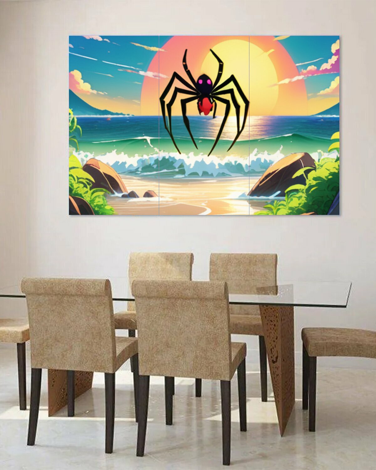 Модульная картина на ОСП В детскую комнату "Животные, звери, паук на море" 188x125 см. 3 части для интерьера на стену информация: