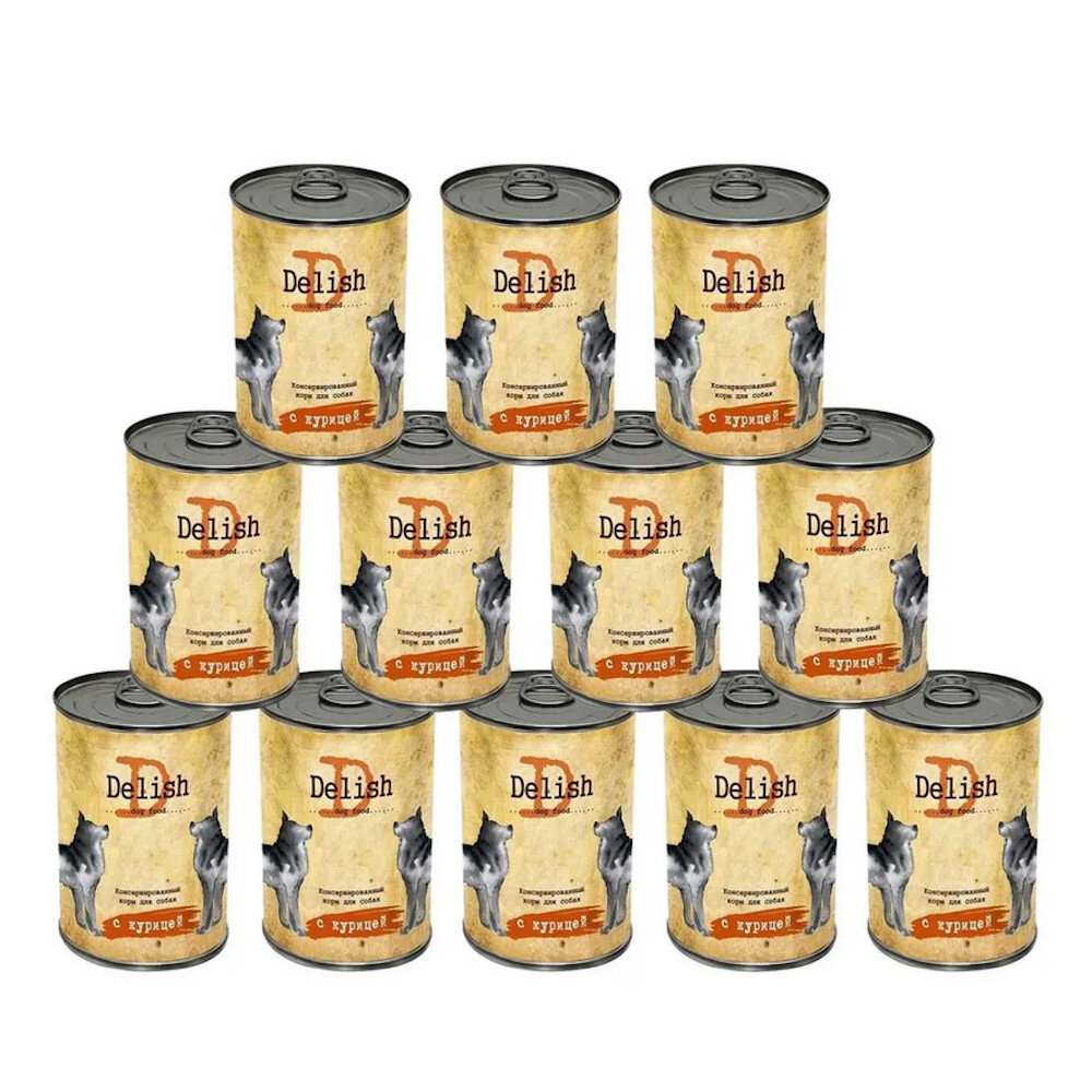 10 цен на DELISH (Делиш) консервы для собак, курица, 970 гр х 12 шт.