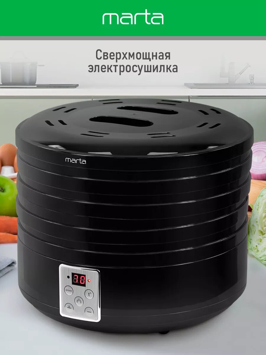 MARTA MFD-5042PS 6 поддонов 4+2(пастила) темный обсидиан сушилка д/фруктов,овощей