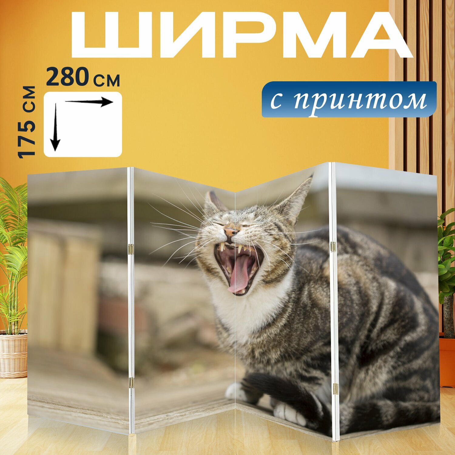 10 цен на Ширма "Кошка, животные, домашний питомец" перегородка для зонирования комнаты с принтом 280x175 см. на холсте