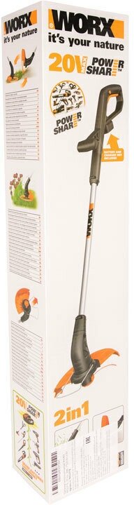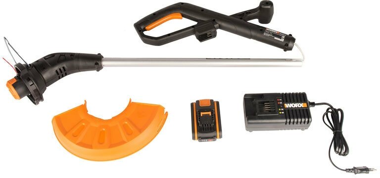 | Подробная комплектация | триммер с дополнительной рукояткой, аккумуляторная батарея Worx WA3550.1, зарядное устройство Worx WA3760, катушка Worx WA0004, защитный кожух, инструкция |