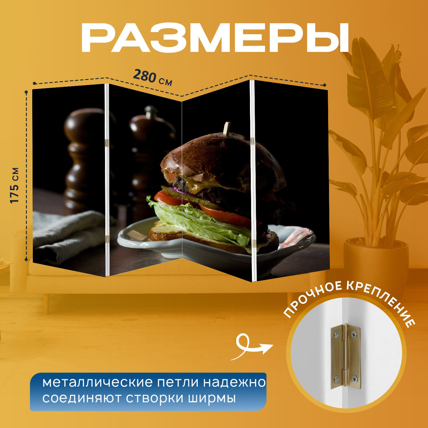 Отзывы на Ширма "Бургер, ожирение, диета" перегородка для зонирования комнаты с принтом 280x175 см. на холсте