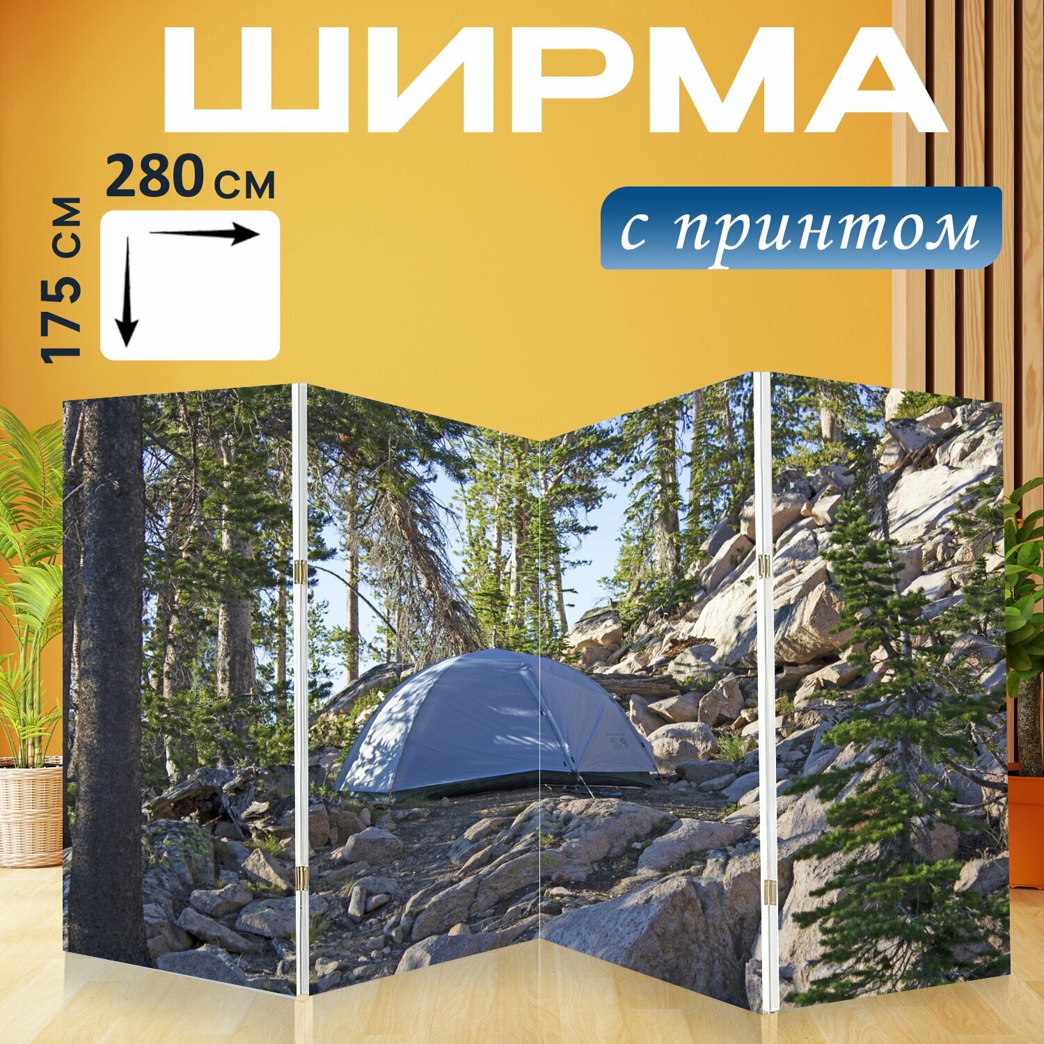 Ширма "Палатка, походы, отдых на природе" перегородка для зонирования комнаты с принтом 280x175 см. на холсте информация: