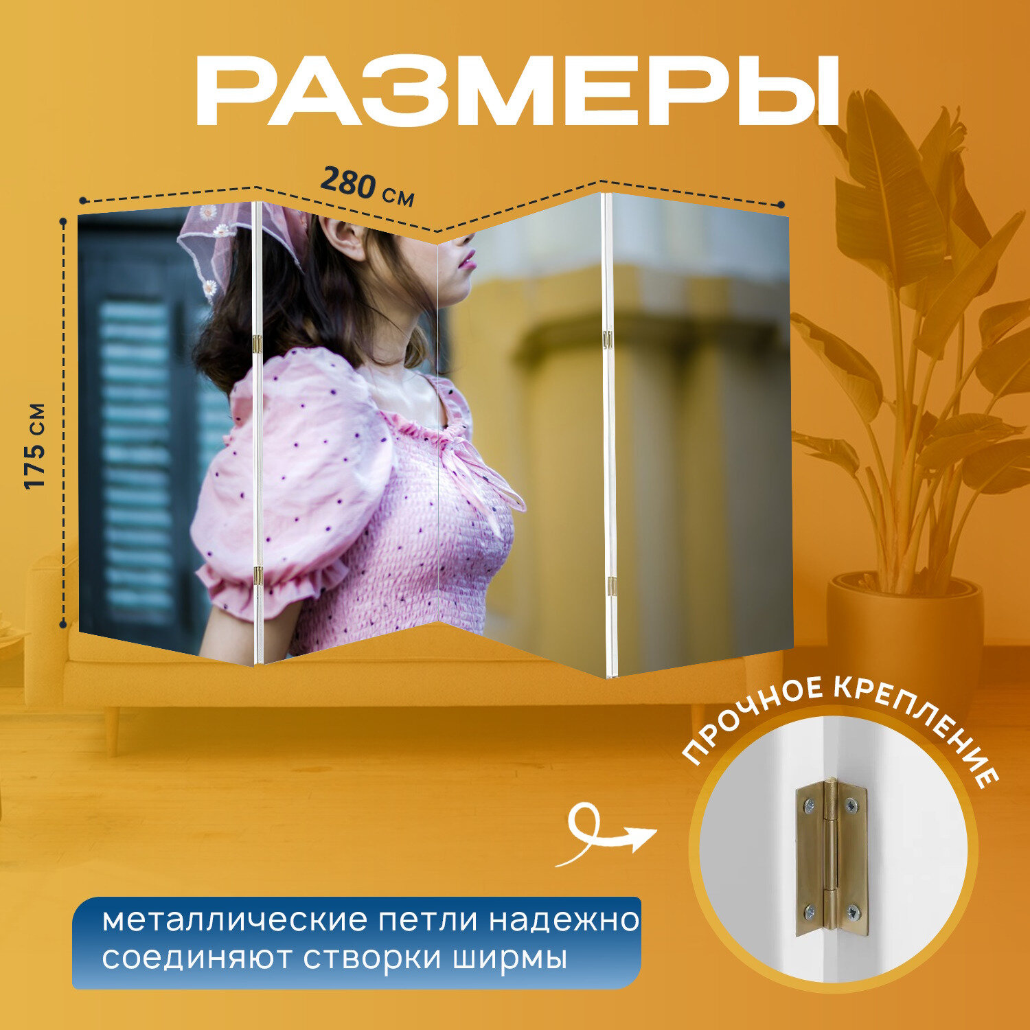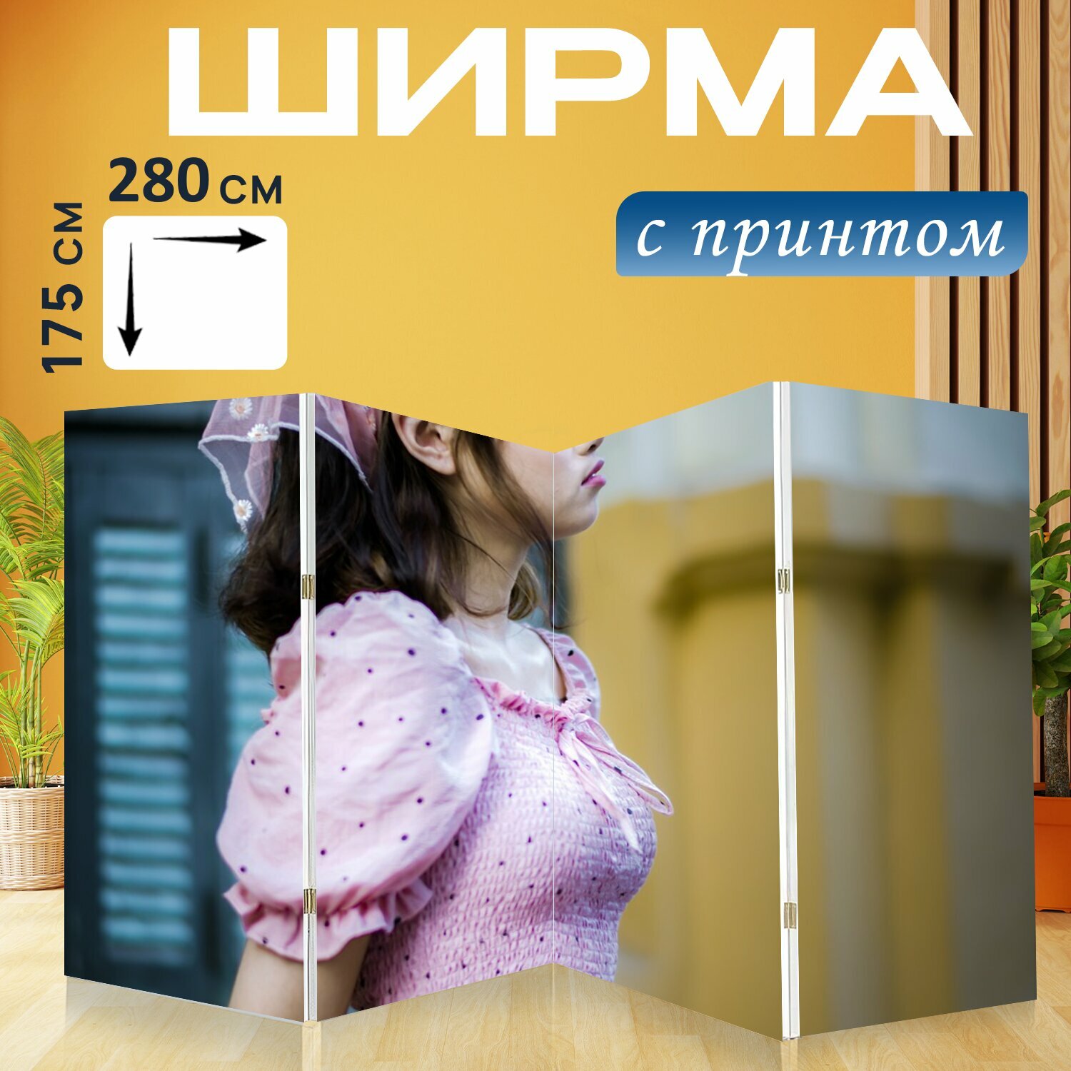 10 цен на Ширма "Женщина, модель, повседневный" перегородка для зонирования комнаты с принтом 280x175 см. на холсте