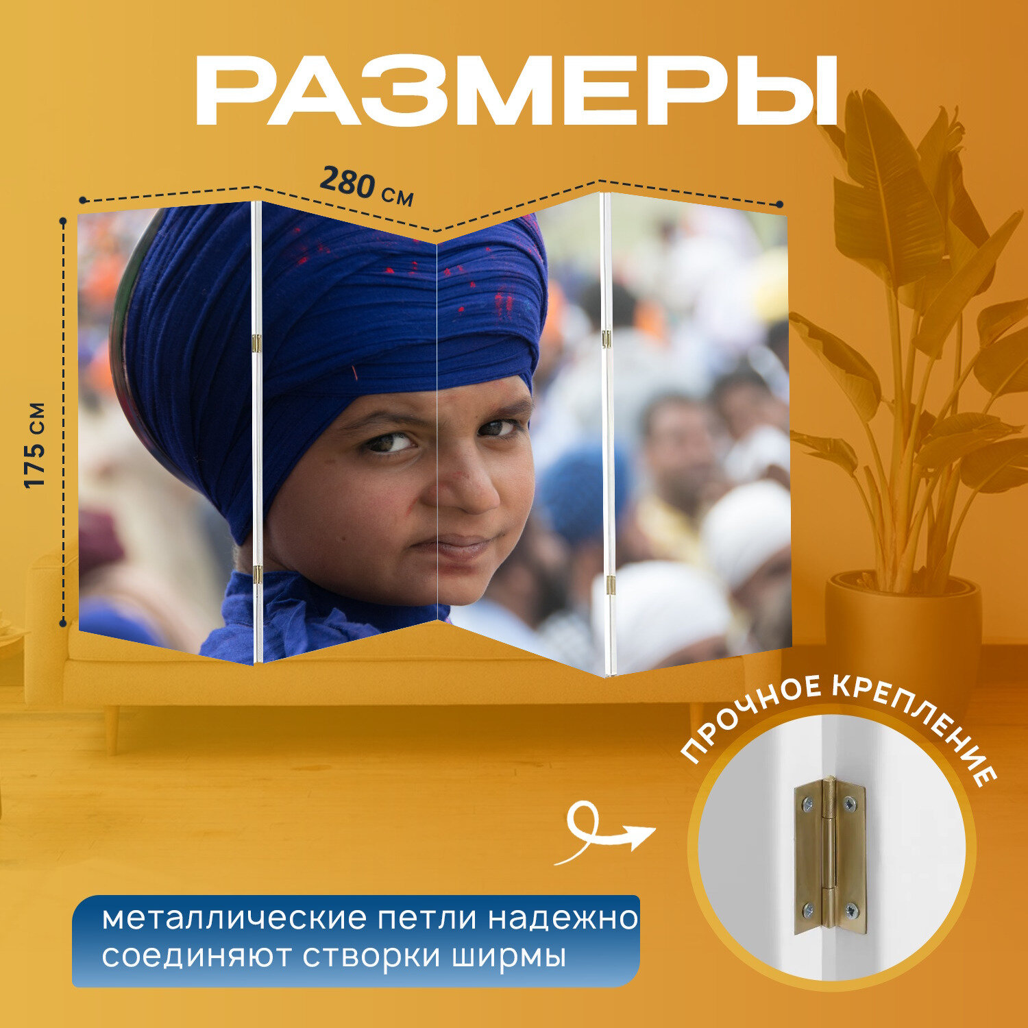 10 цен на Ширма "Индия, портрет, гай" перегородка для зонирования комнаты с принтом 280x175 см. на холсте
