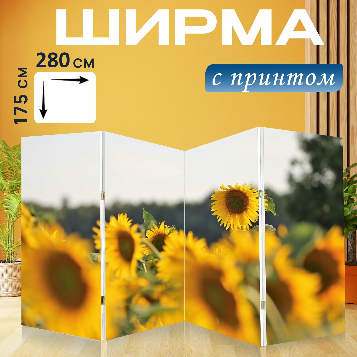 Ширма "Сельское хозяйство, подсолнухи, блум" перегородка для зонирования комнаты с принтом 280x175 см. на холсте информация: