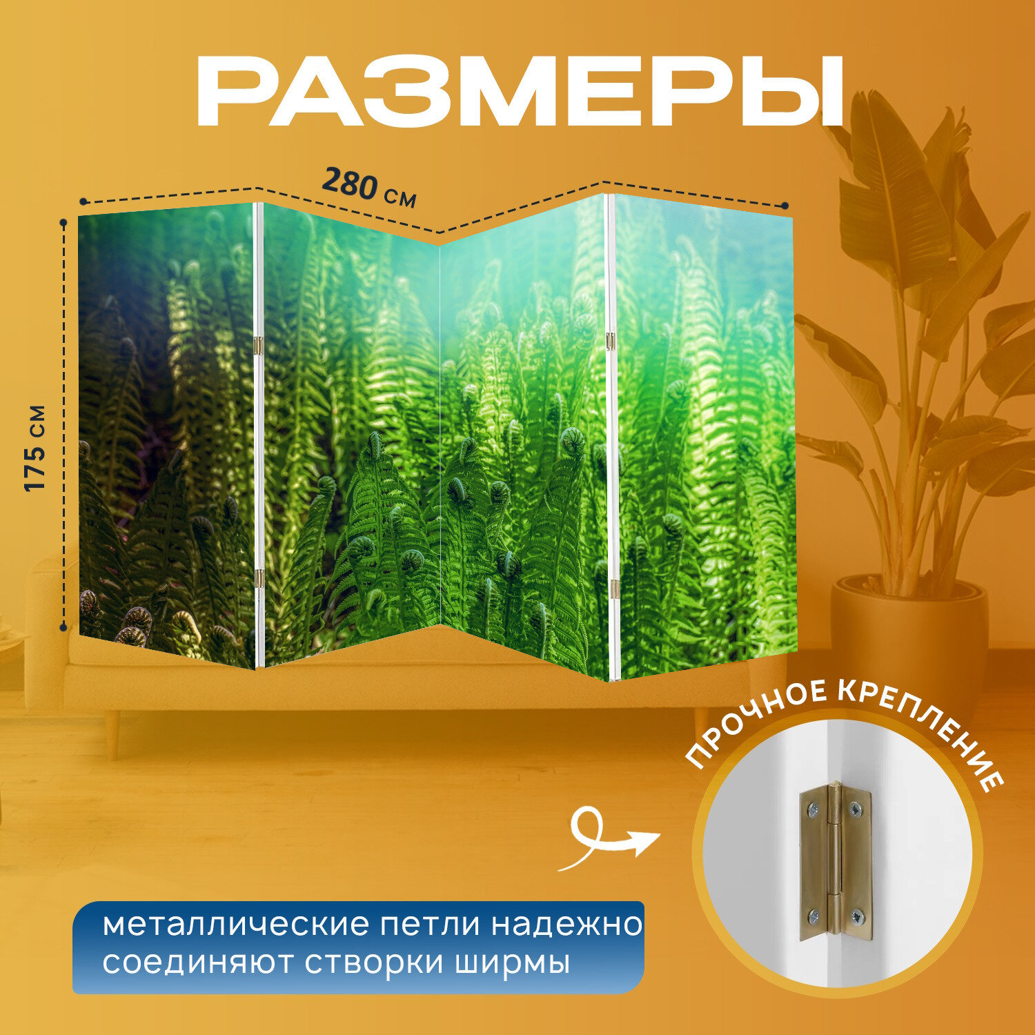 Ширма "Папоротник, лес, природа" перегородка для зонирования комнаты с принтом 280x175 см. на холсте информация:
