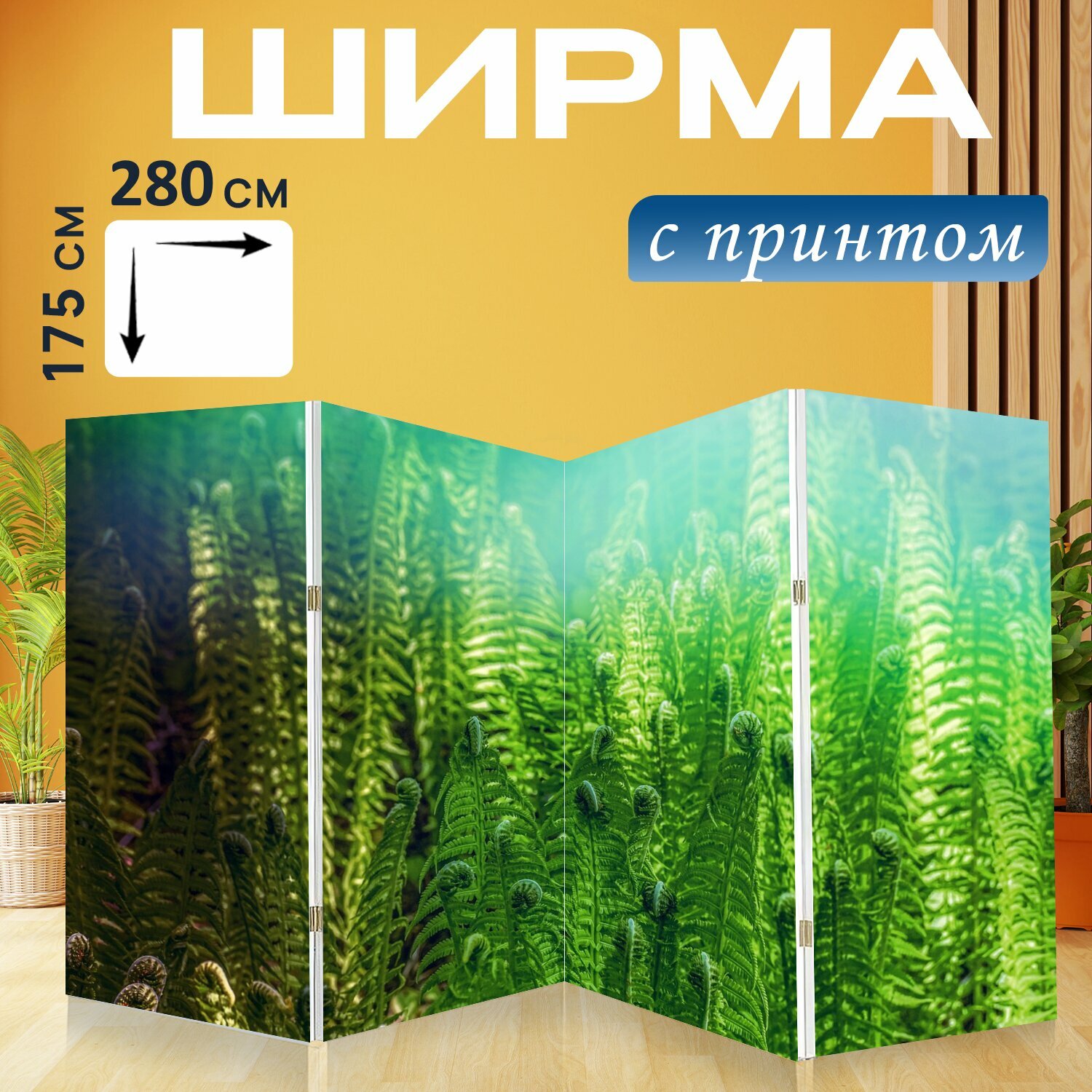 10 цен на Ширма "Папоротник, лес, природа" перегородка для зонирования комнаты с принтом 280x175 см. на холсте