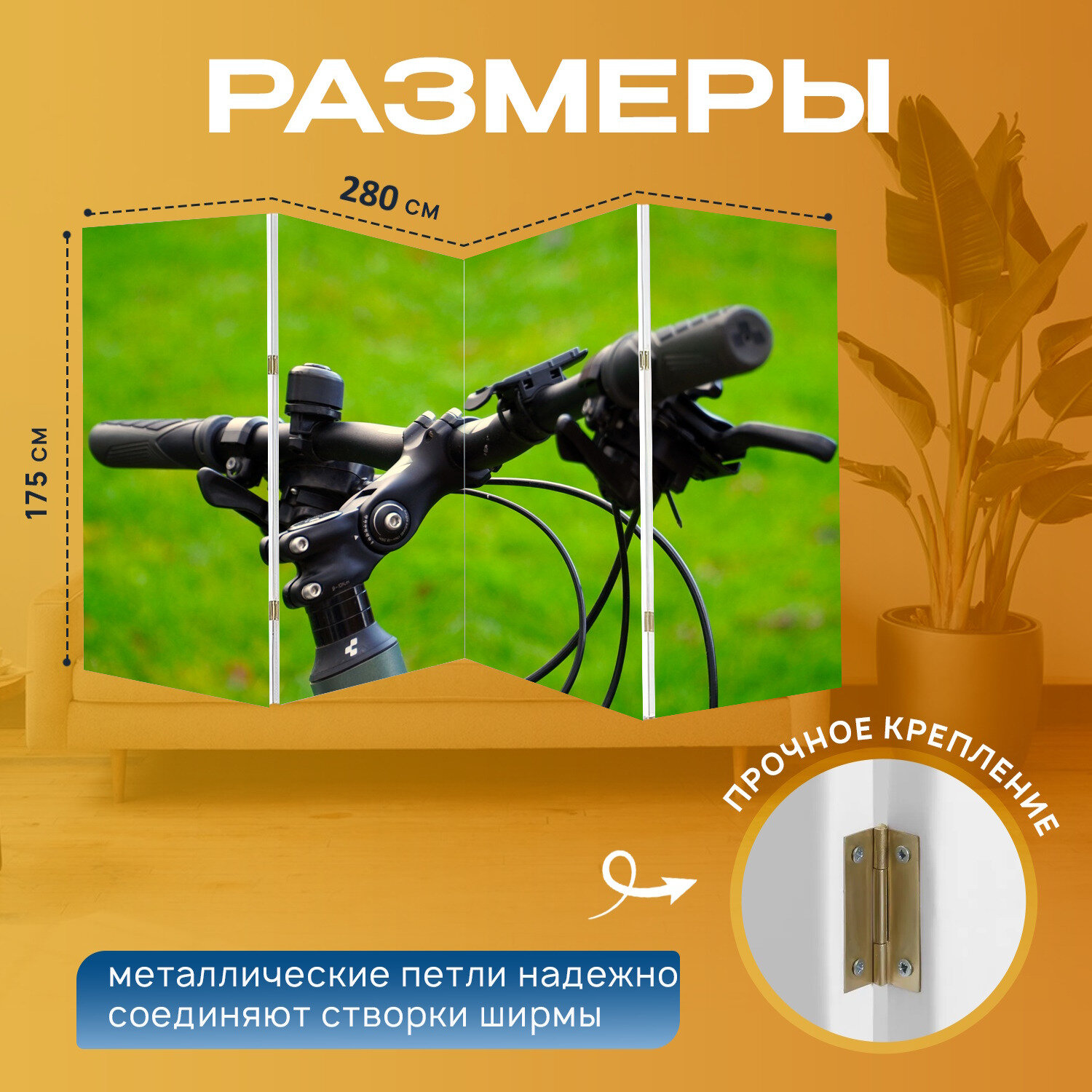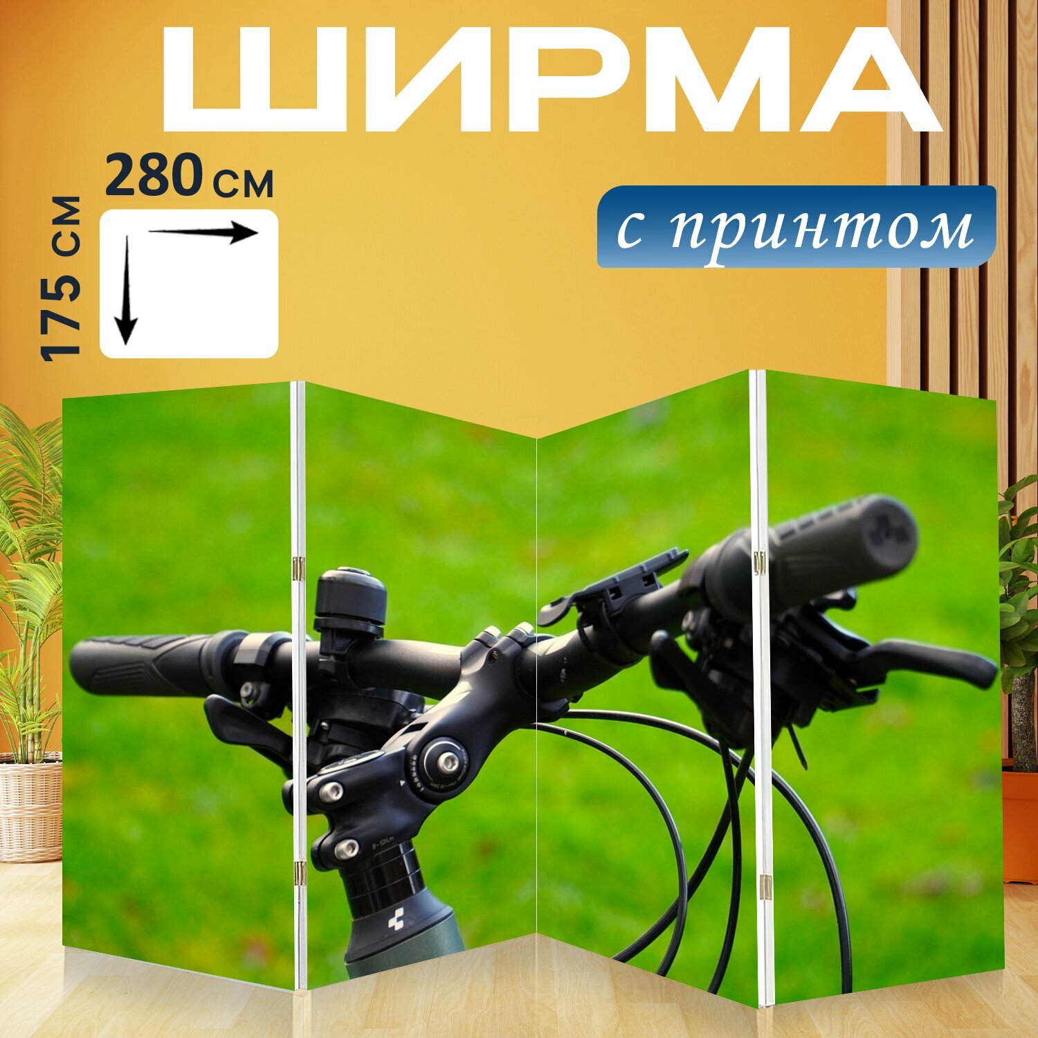 10 цен на Ширма "Велосипед, руль, колесо" перегородка для зонирования комнаты с принтом 280x175 см. на холсте