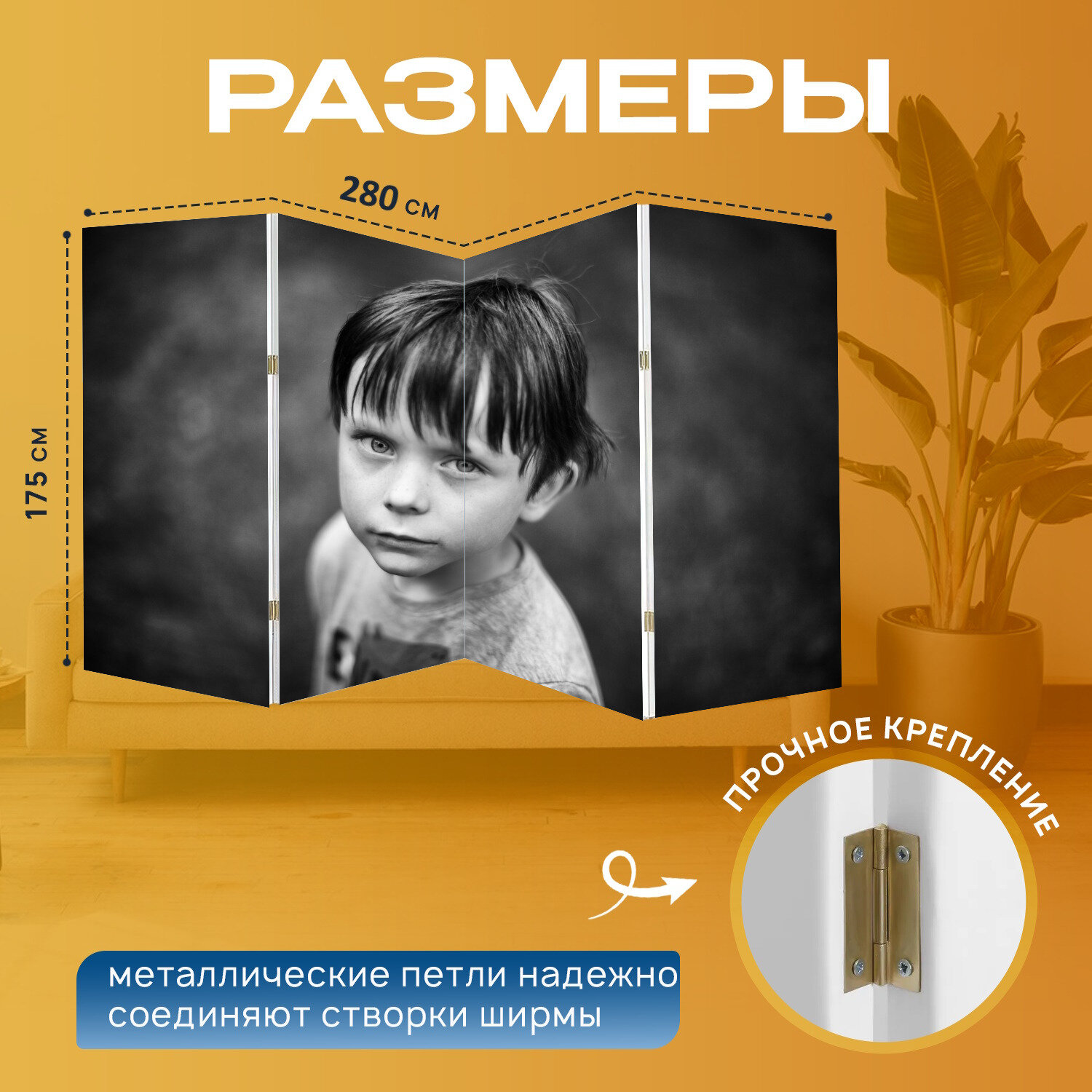 Отзывы на Ширма "Мальчик, молодой, сын" перегородка для зонирования комнаты с принтом 280x175 см. на холсте