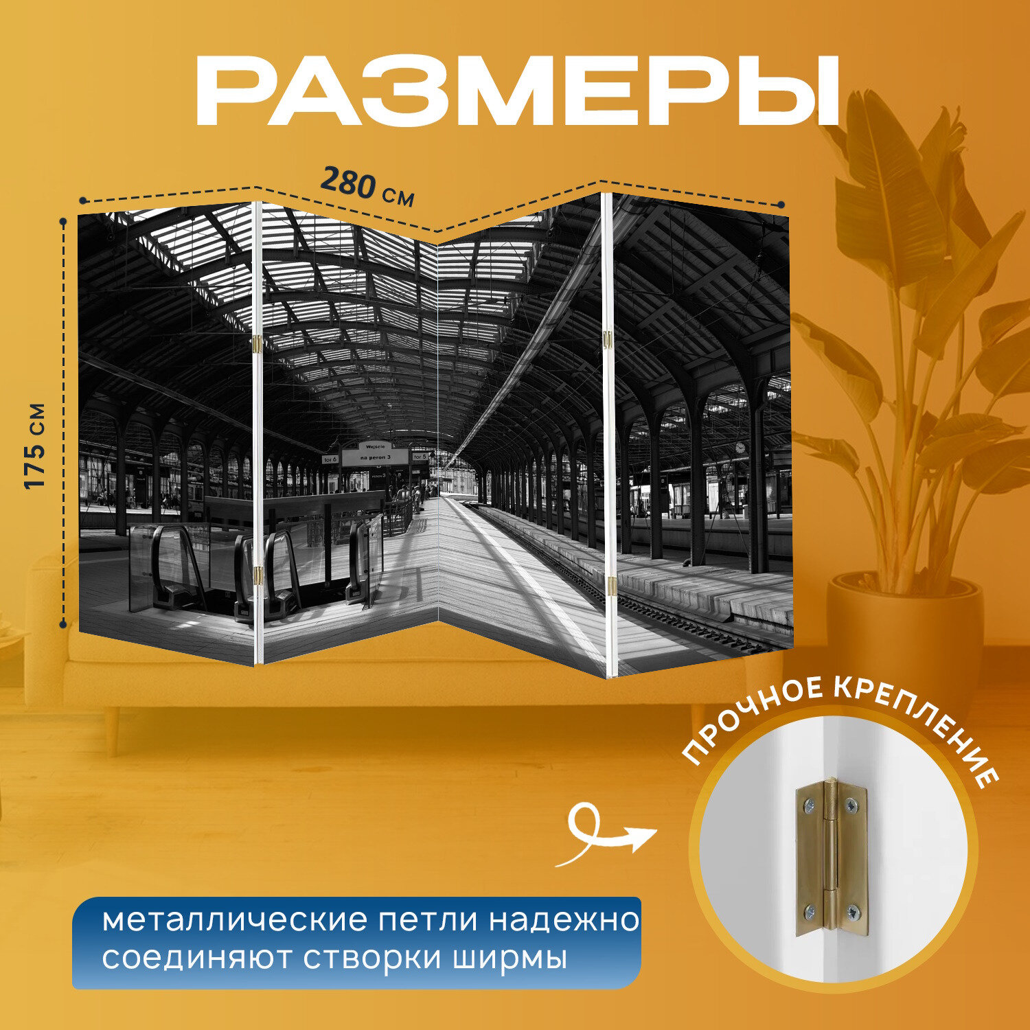 Ширма "Пкп, вроцлав, железнодорожная станция" перегородка для зонирования комнаты с принтом 280x175 см. на холсте информация: