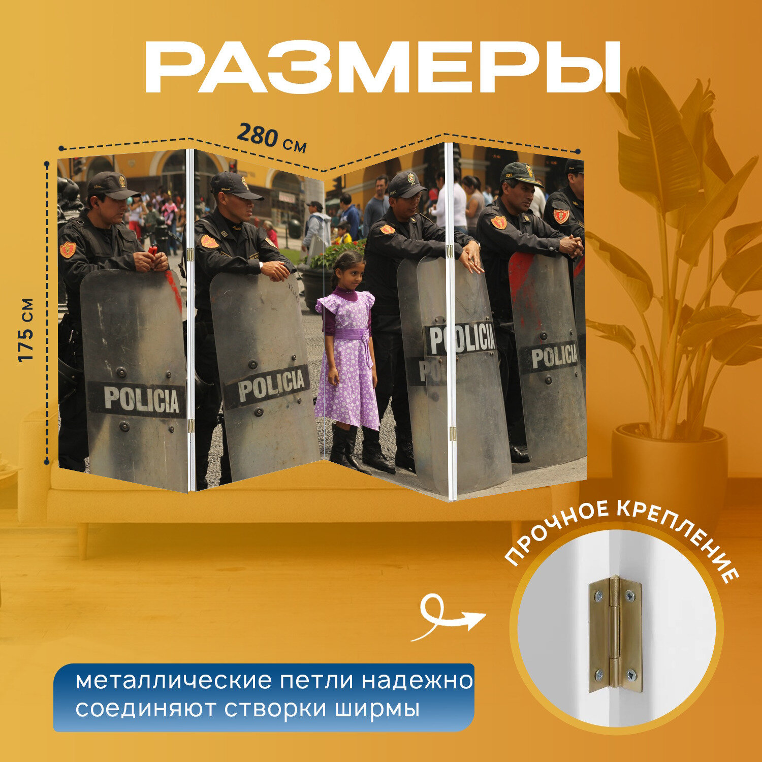 Отзывы на Ширма "Полиция, перу, лима" перегородка для зонирования комнаты с принтом 280x175 см. на холсте