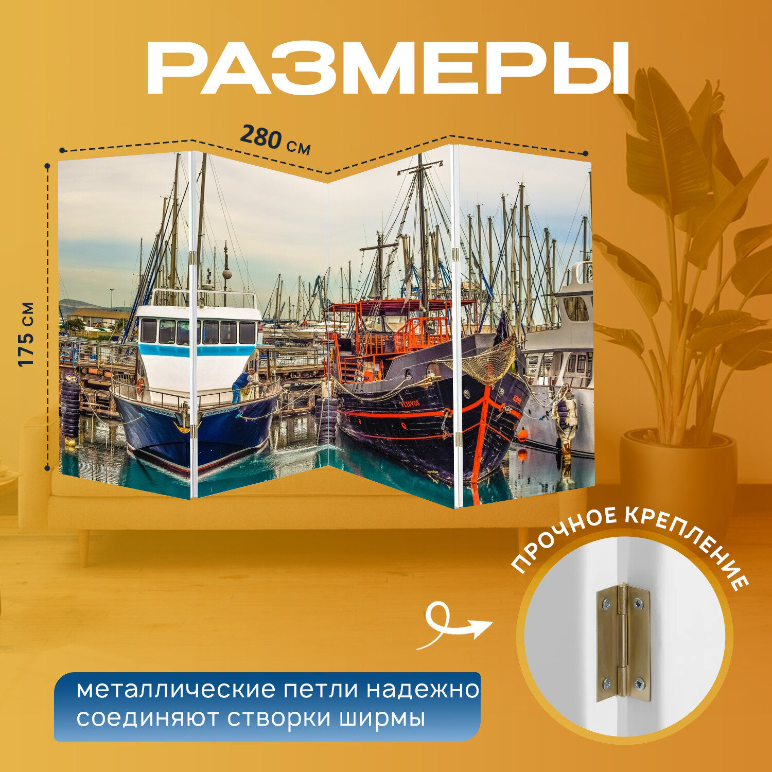 Ширма "Лодка, марина, море" перегородка для зонирования комнаты с принтом 280x175 см. на холсте информация: