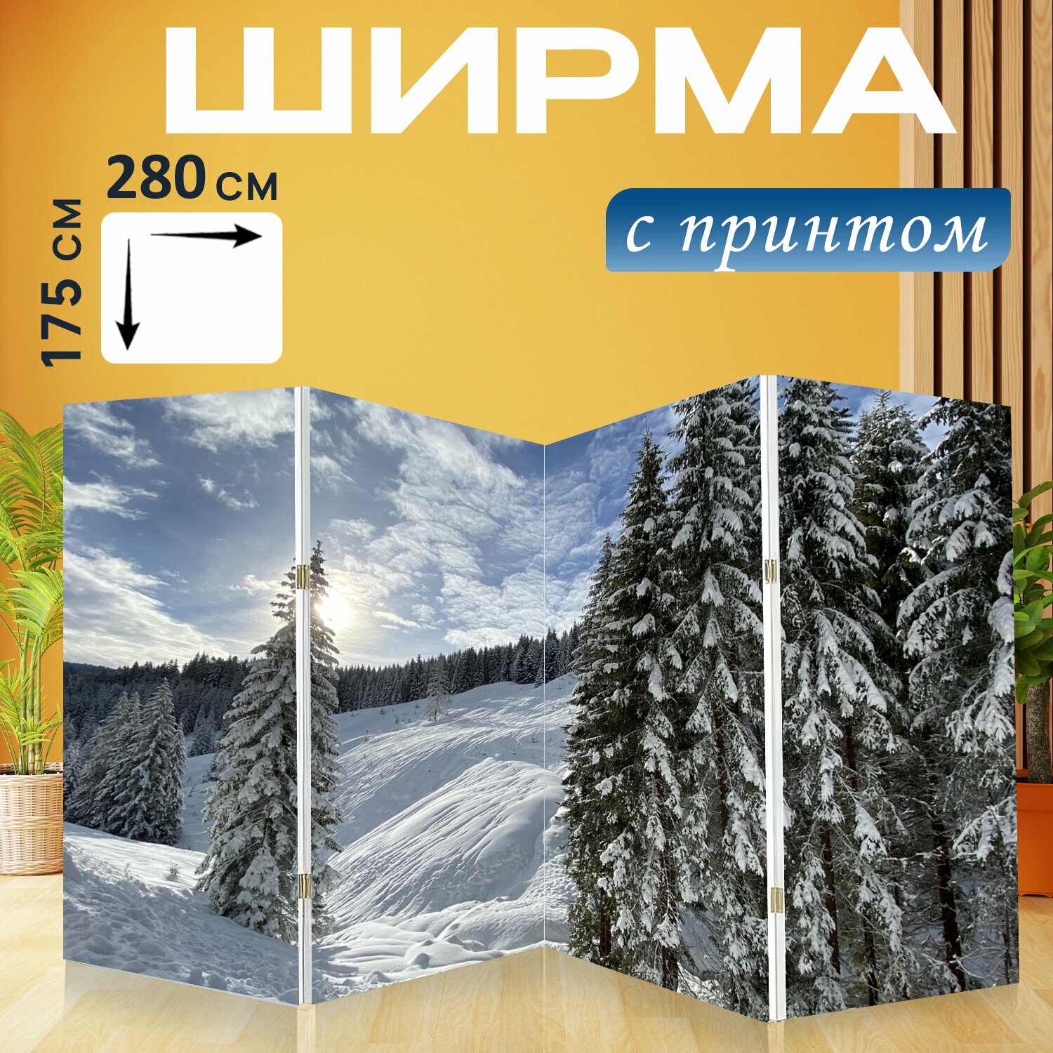 10 цен на Ширма "Деревья, лес, снег" перегородка для зонирования комнаты с принтом 280x175 см. на холсте