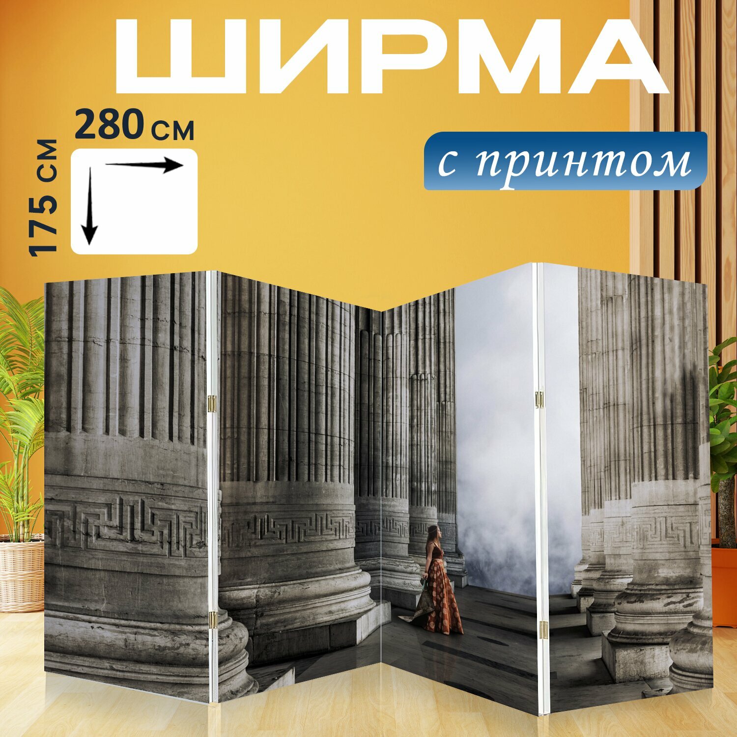 10 цен на Ширма "Замок, столбцы, принцесса" перегородка для зонирования комнаты с принтом 280x175 см. на холсте