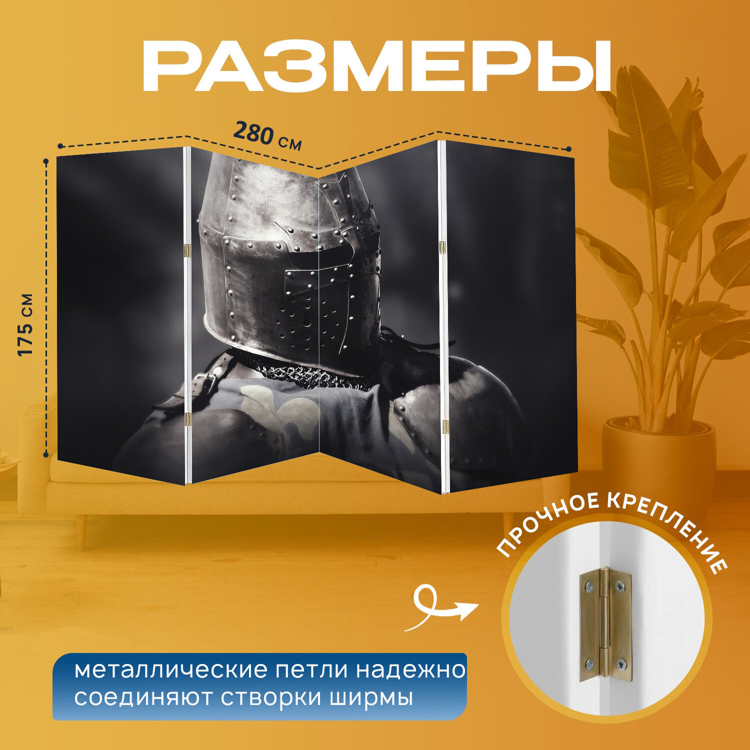 10 цен на Ширма "Воин, рыцарь, броня" перегородка для зонирования комнаты с принтом 280x175 см. на холсте