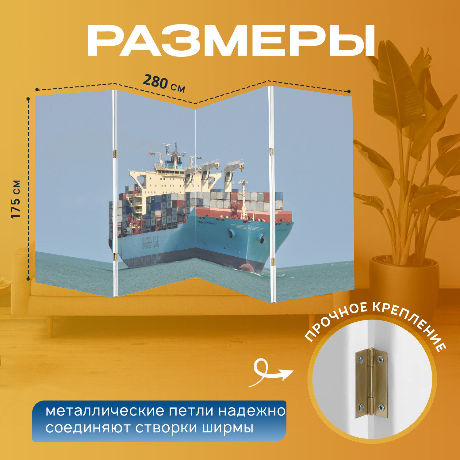 10 цен на Ширма "Судно, море, груз" перегородка для зонирования комнаты с принтом 280x175 см. на холсте