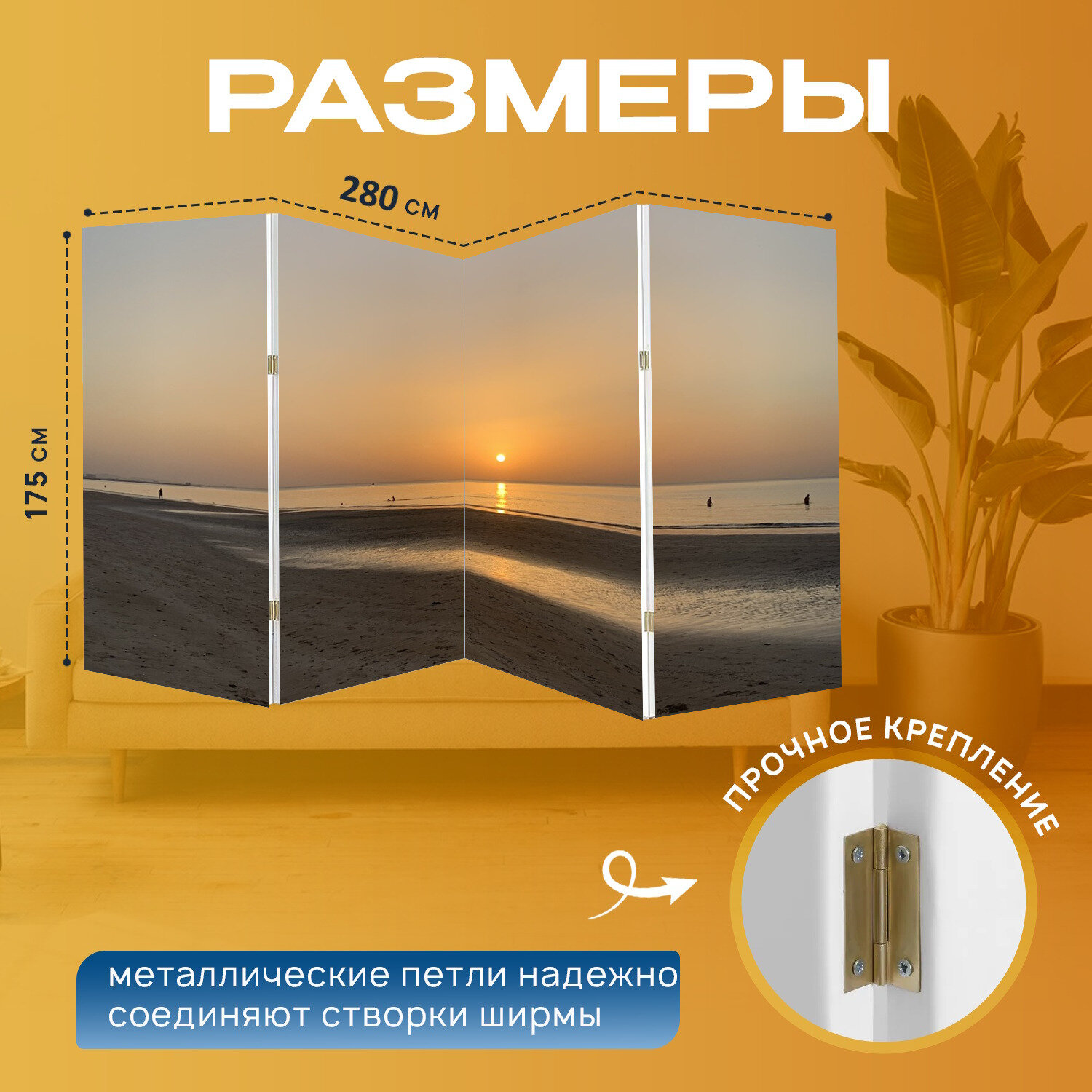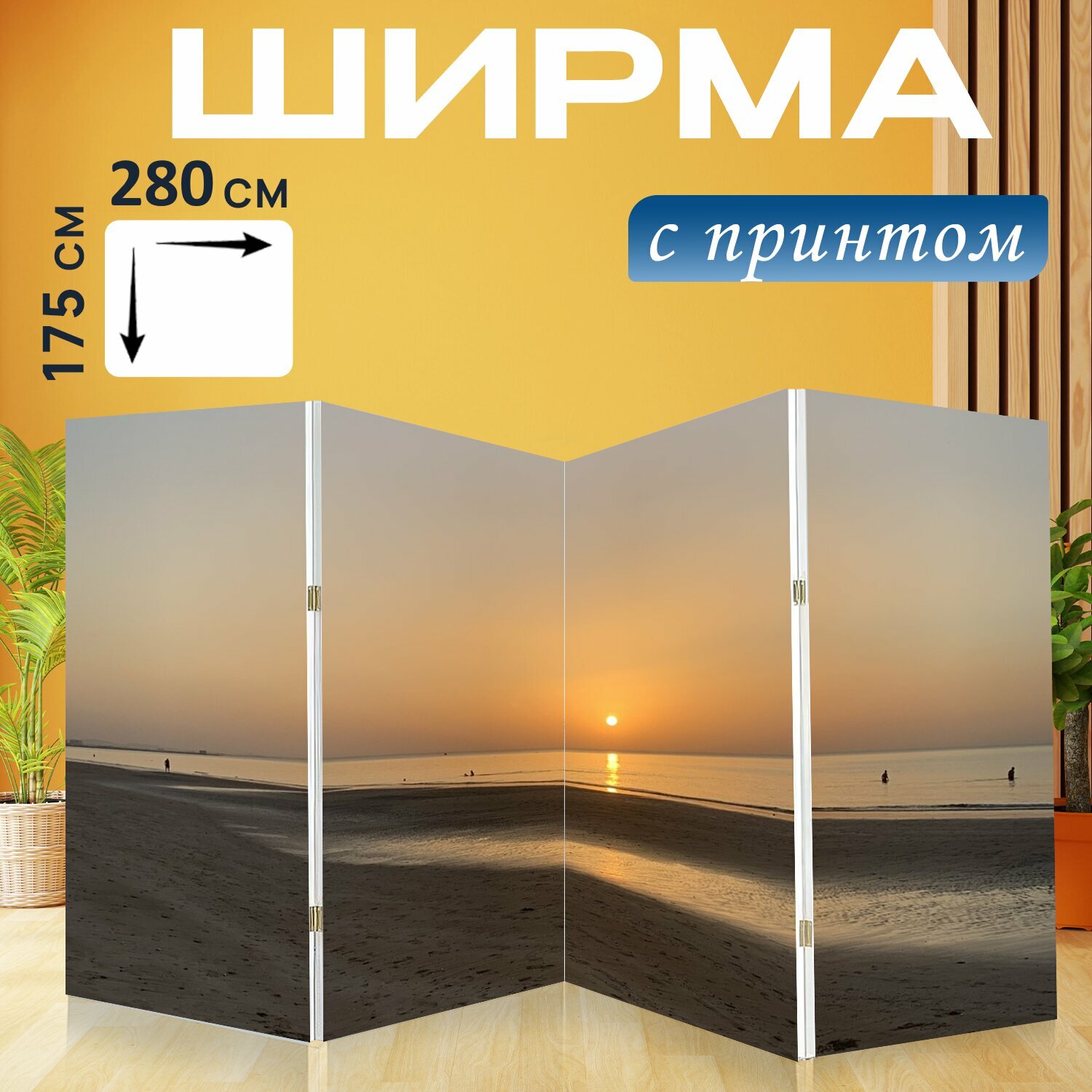 10 цен на Ширма "Заход солнца, пляж, песок" перегородка для зонирования комнаты с принтом 280x175 см. на холсте