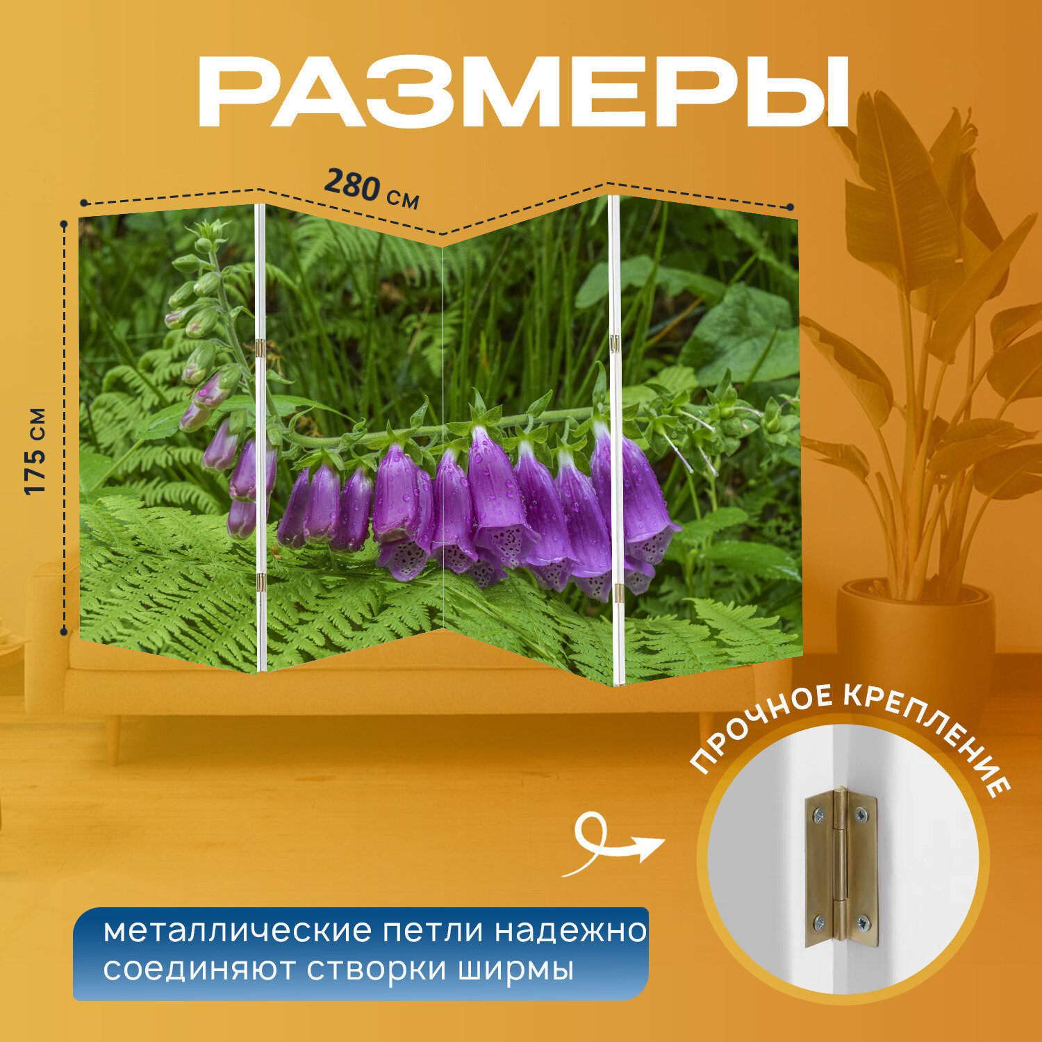 10 цен на Ширма "Наперсток, завод, цветок" перегородка для зонирования комнаты с принтом 280x175 см. на холсте