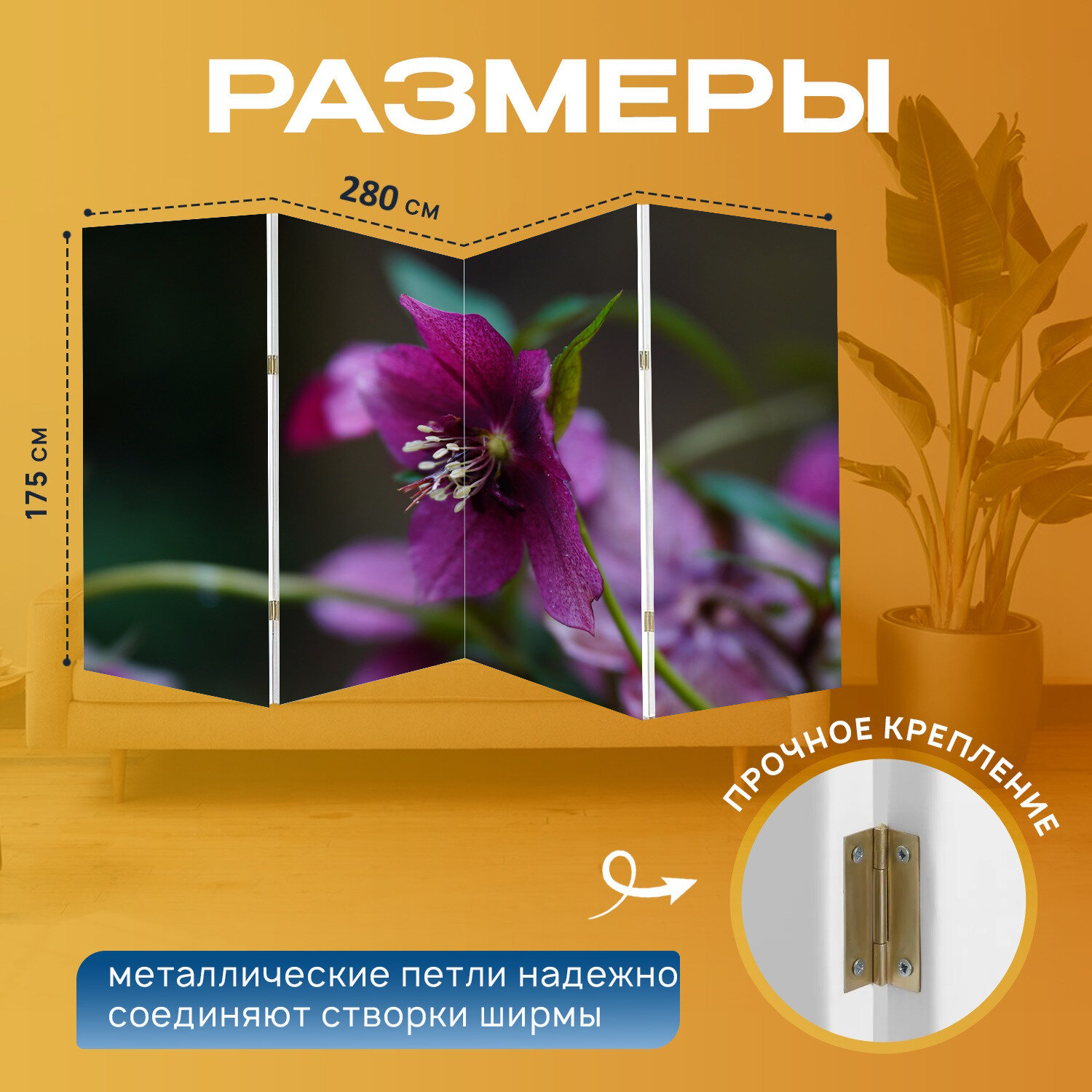 Ширма "Рождественская роза, билли роуз, морозник восточный" перегородка для зонирования комнаты с принтом 280x175 см. на холсте информация: