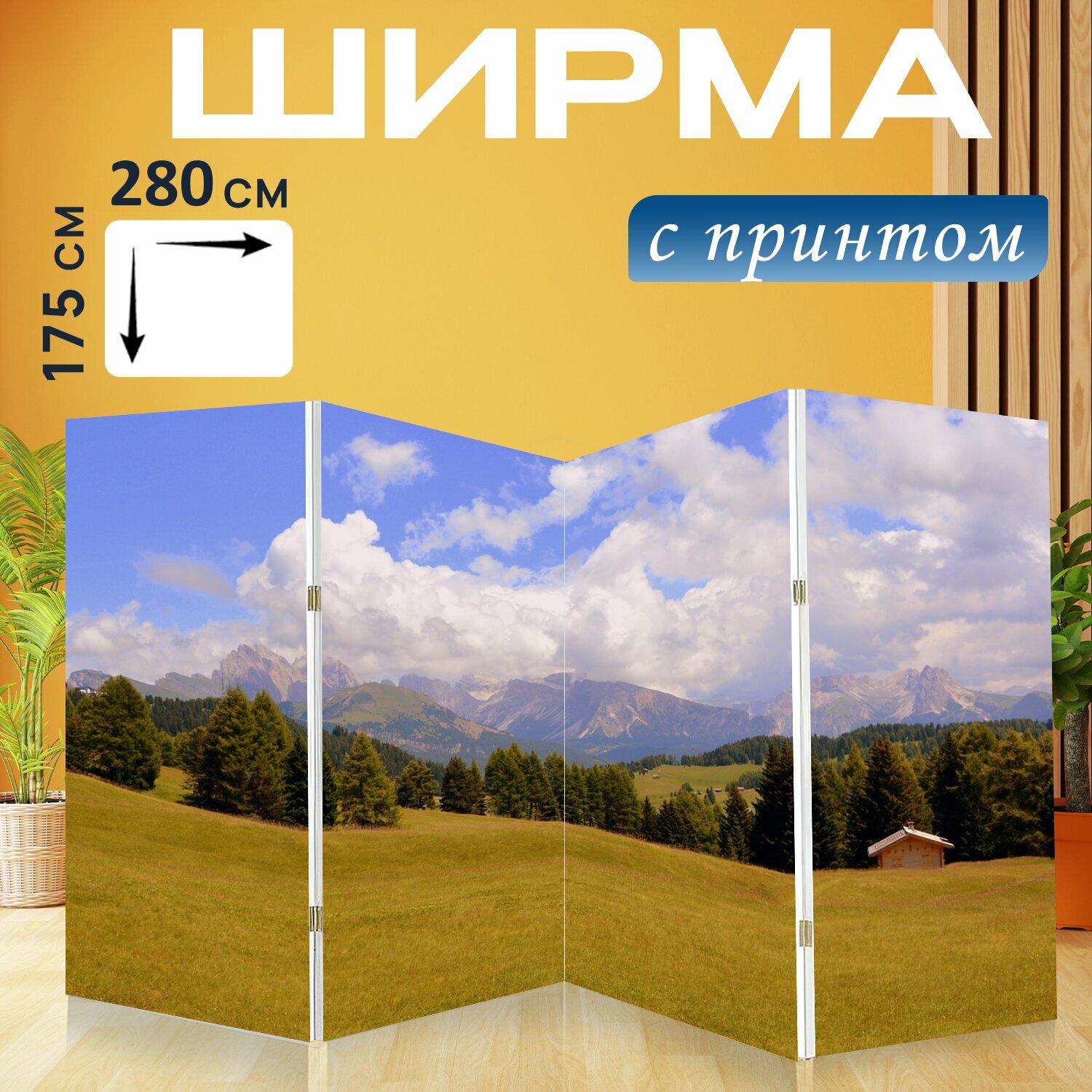 Ширма "Лужайка, доломиты, гора" перегородка для зонирования комнаты с принтом 280x175 см. на холсте информация: