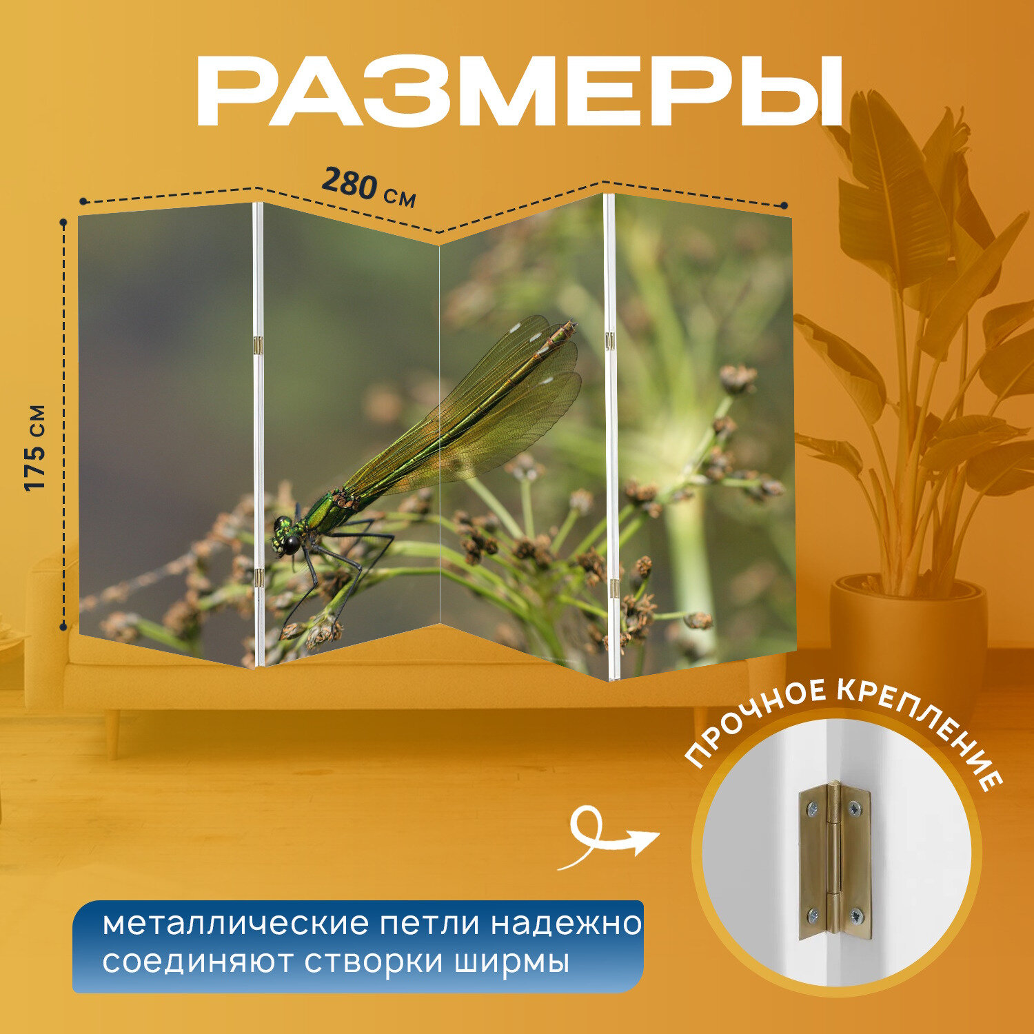 10 цен на Ширма "Демуазель, насекомое, крылья" перегородка для зонирования комнаты с принтом 280x175 см. на холсте