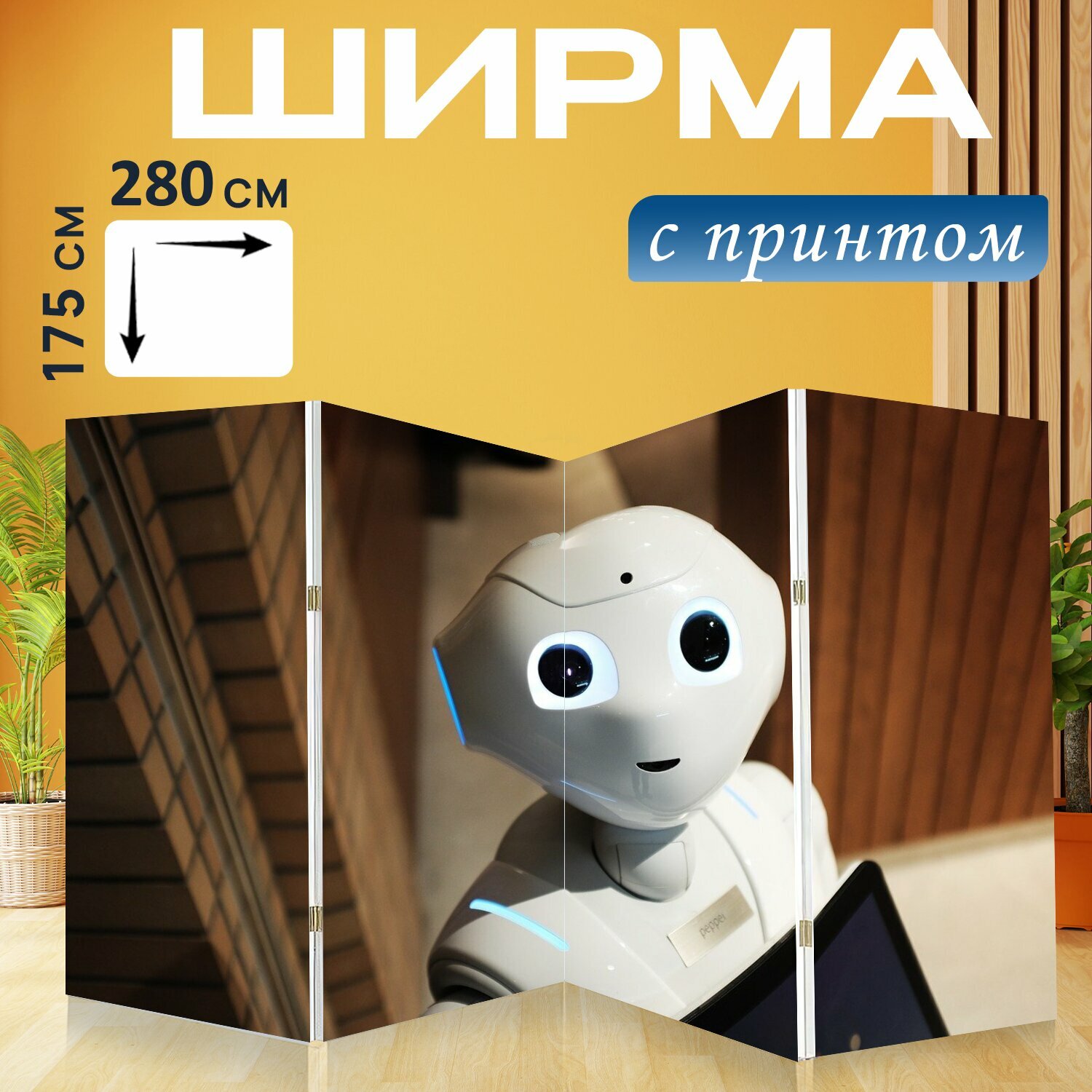 Ширма "Робот, технология, современное" перегородка для зонирования комнаты с принтом 280x175 см. на холсте информация: