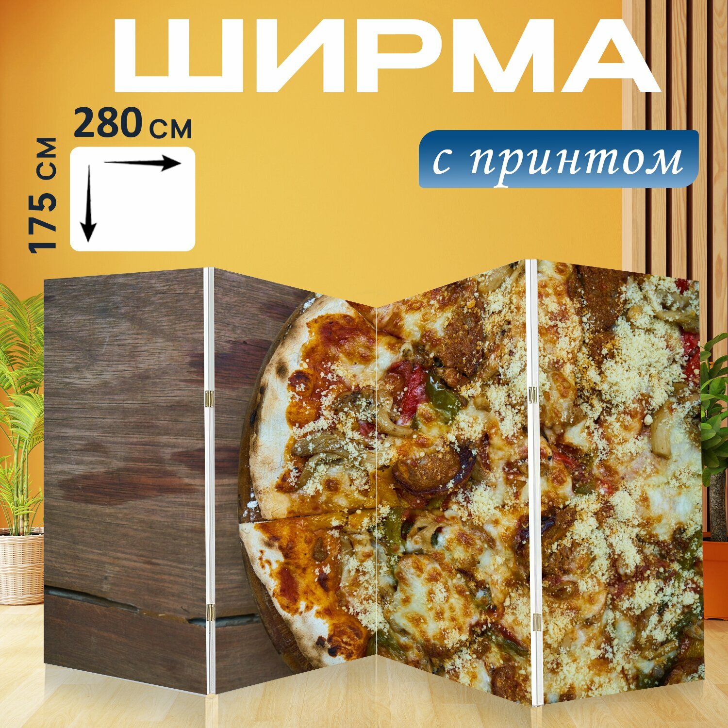 Ширма "Пицца, италия, никто" перегородка для зонирования комнаты с принтом 280x175 см. на холсте информация:
