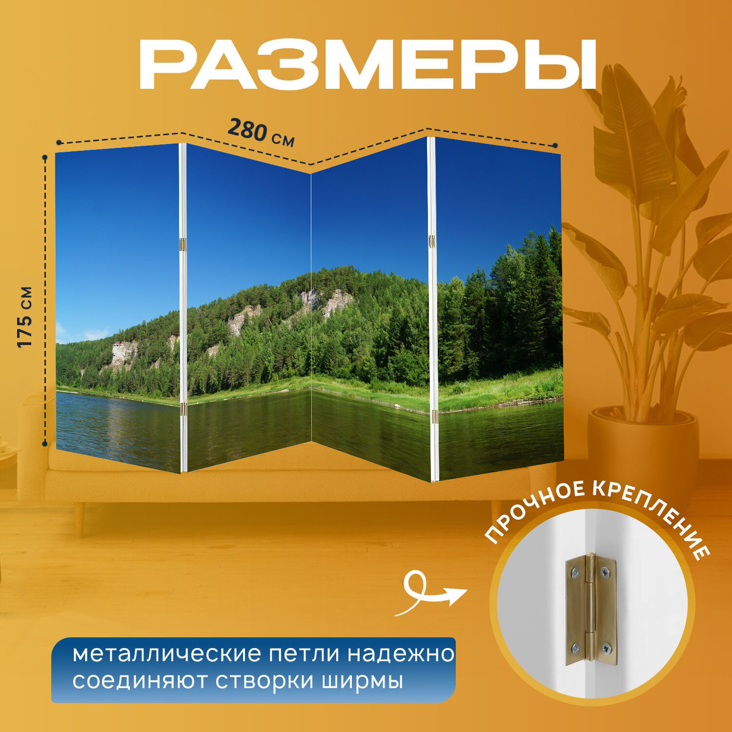 Ширма "Река, утес, берег реки" перегородка для зонирования комнаты с принтом 280x175 см. на холсте информация:
