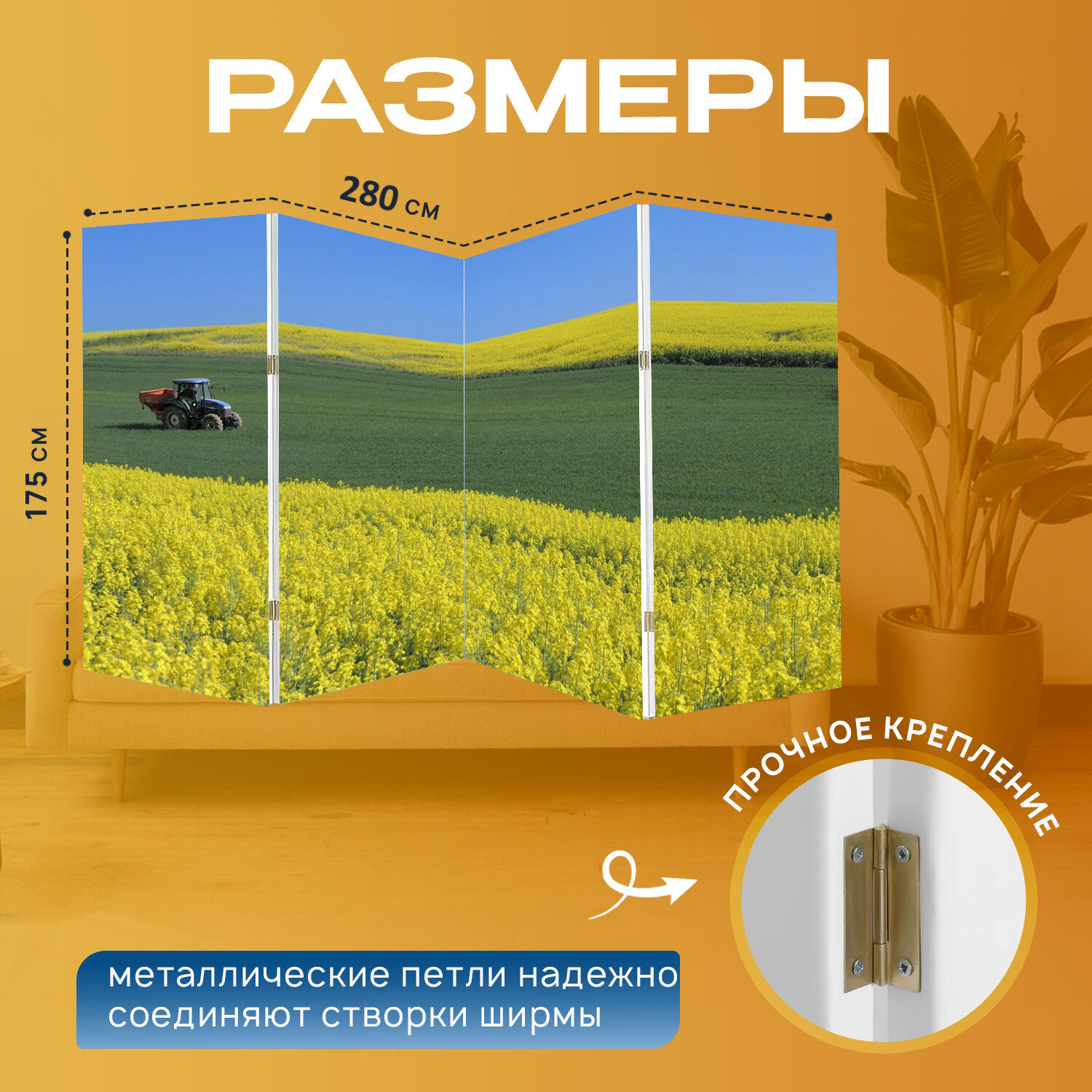 Ширма "Рапс, поле, жёлтый" перегородка для зонирования комнаты с принтом 280x175 см. на холсте информация: