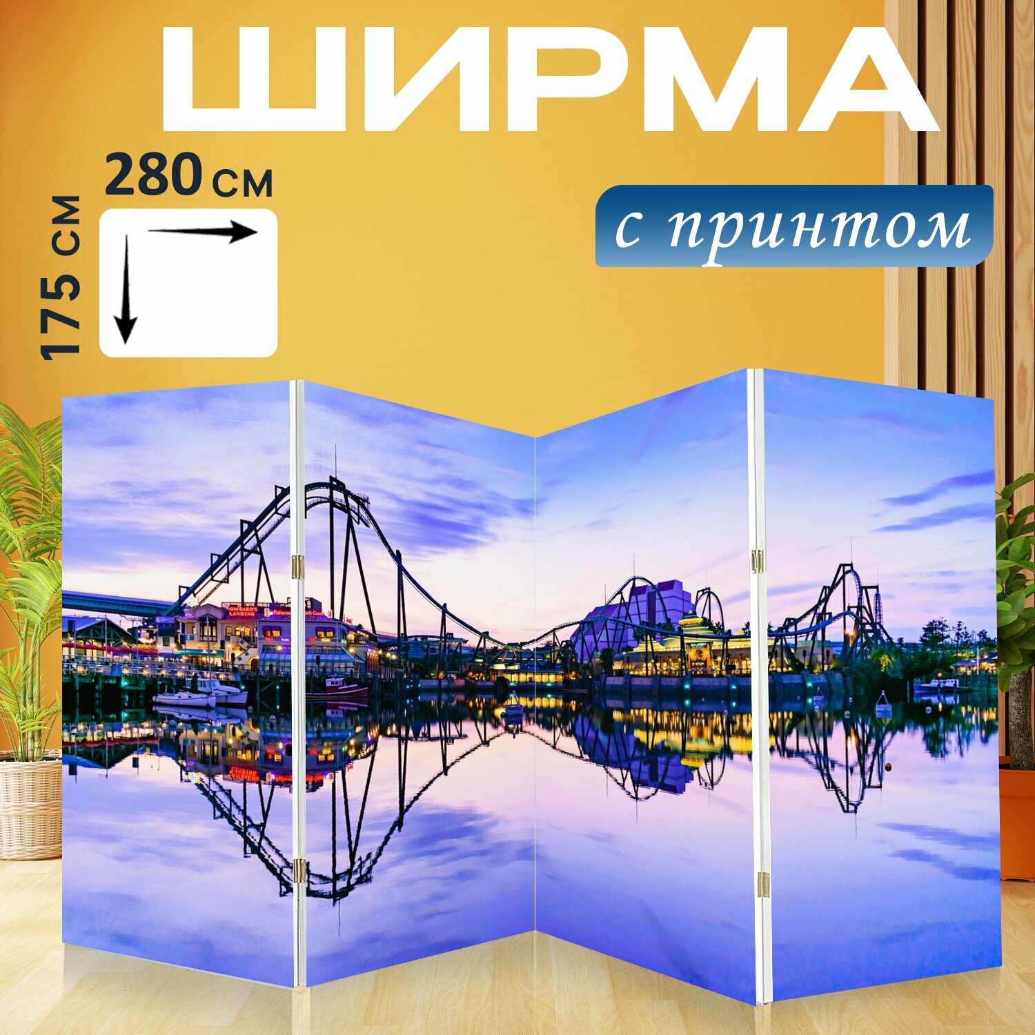 10 цен на Ширма "Универсальный, куала, архитектуры" перегородка для зонирования комнаты с принтом 280x175 см. на холсте