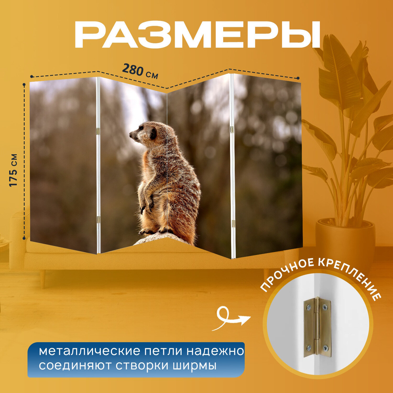 10 цен на Ширма "Сурикат, животное, природа" перегородка для зонирования комнаты с принтом 280x175 см. на холсте