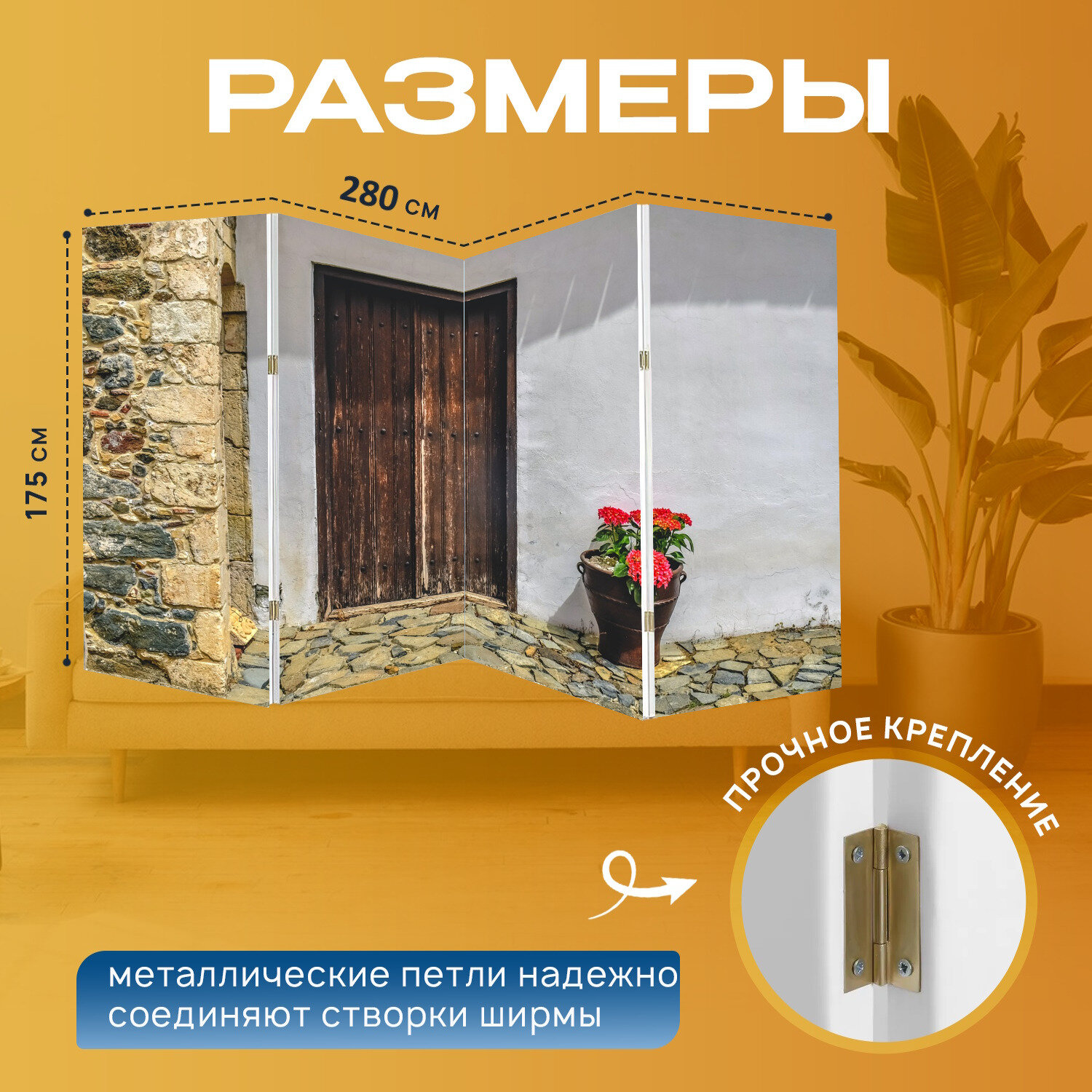 Ширма "Старый дом, дверь, архитектуры" перегородка для зонирования комнаты с принтом 280x175 см. на холсте информация: