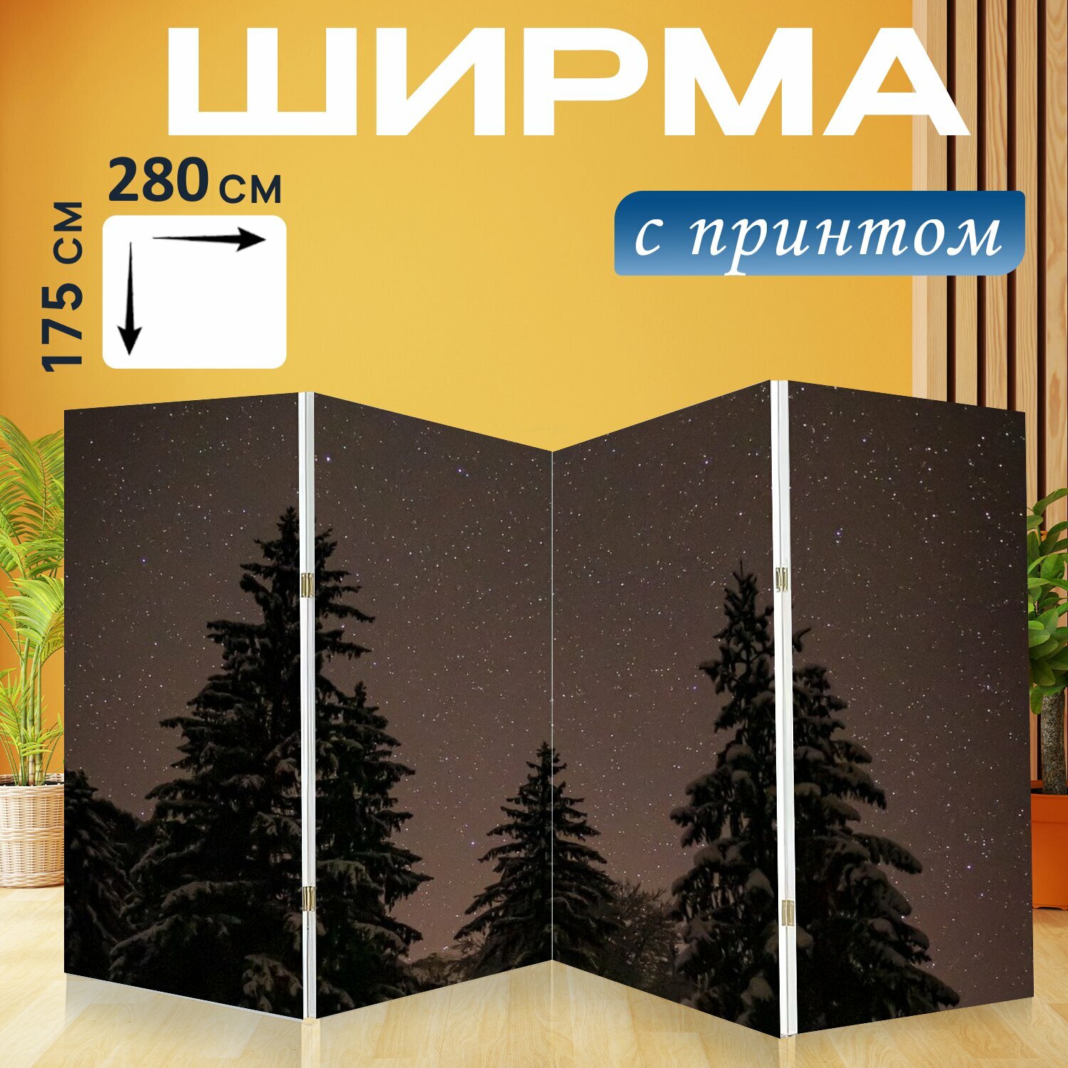 10 цен на Ширма "Звездное небо, горы, пейзаж" перегородка для зонирования комнаты с принтом 280x175 см. на холсте