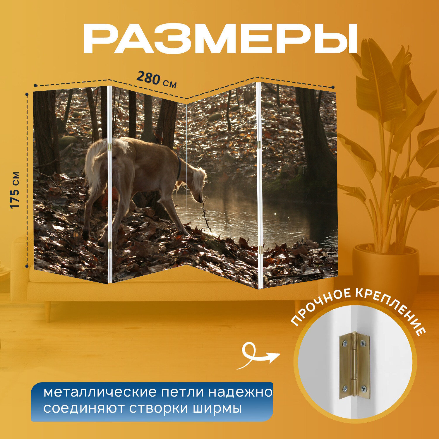 Ширма "Собака, салюки, магия" перегородка для зонирования комнаты с принтом 280x175 см. на холсте информация:
