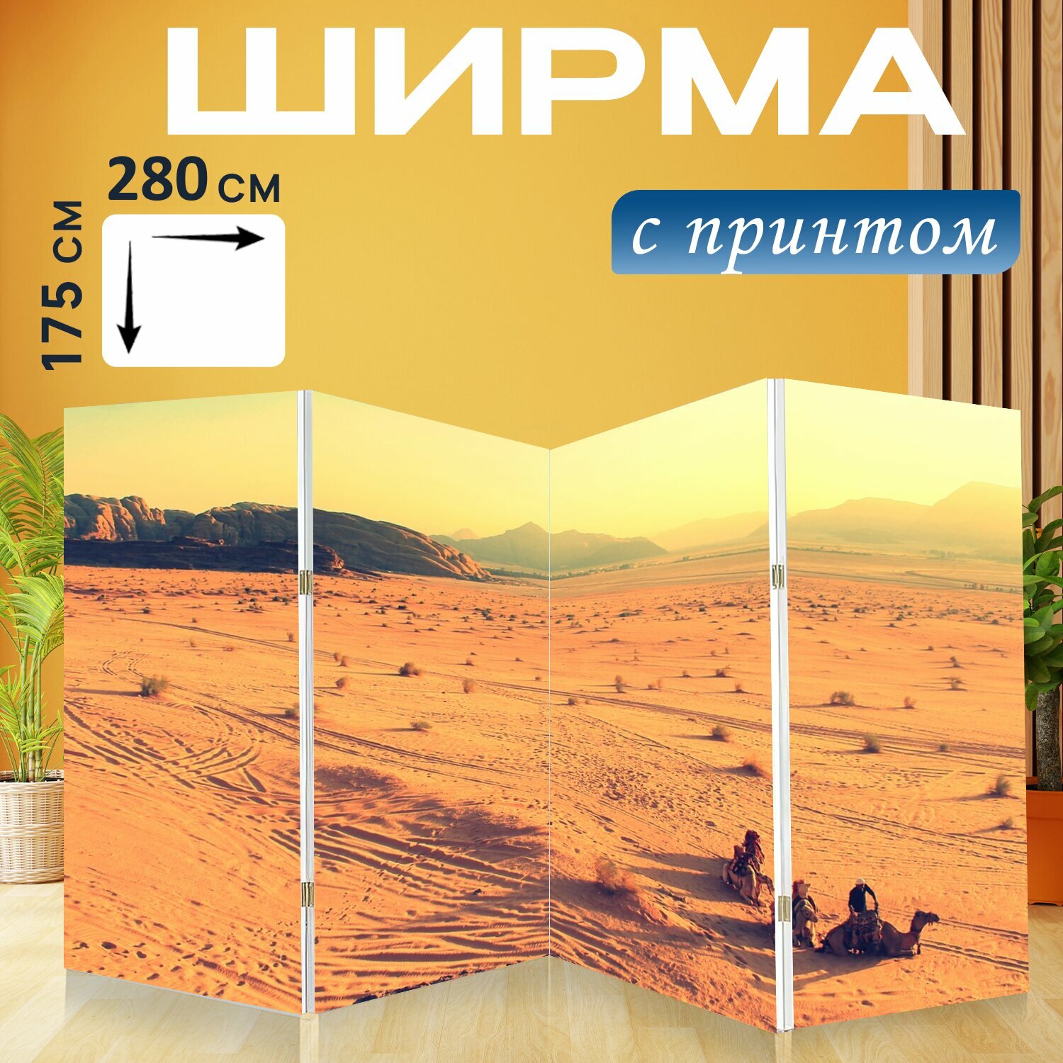 10 цен на Ширма "Верблюды, пустыня, погонщики" перегородка для зонирования комнаты с принтом 280x175 см. на холсте