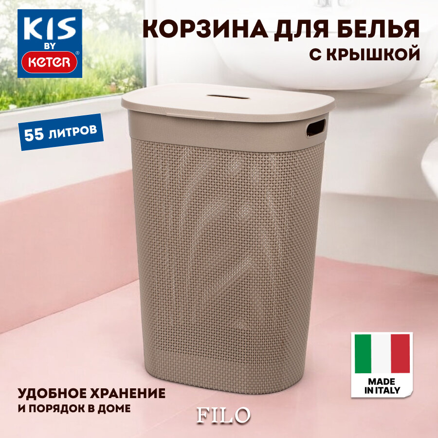 Корзина для белья с крышкой, 55л KIS FILO, пластик, цвет коричневый информация: