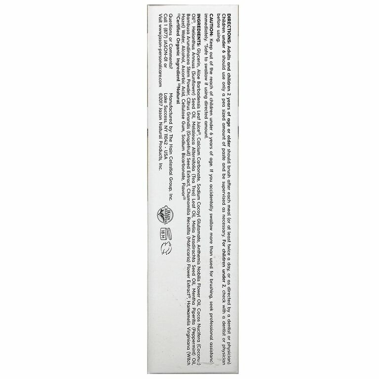 Jason Natural, Simply Coconut, успокаивающая зубная паста, кокосовая ромашка, 119 г информация:
