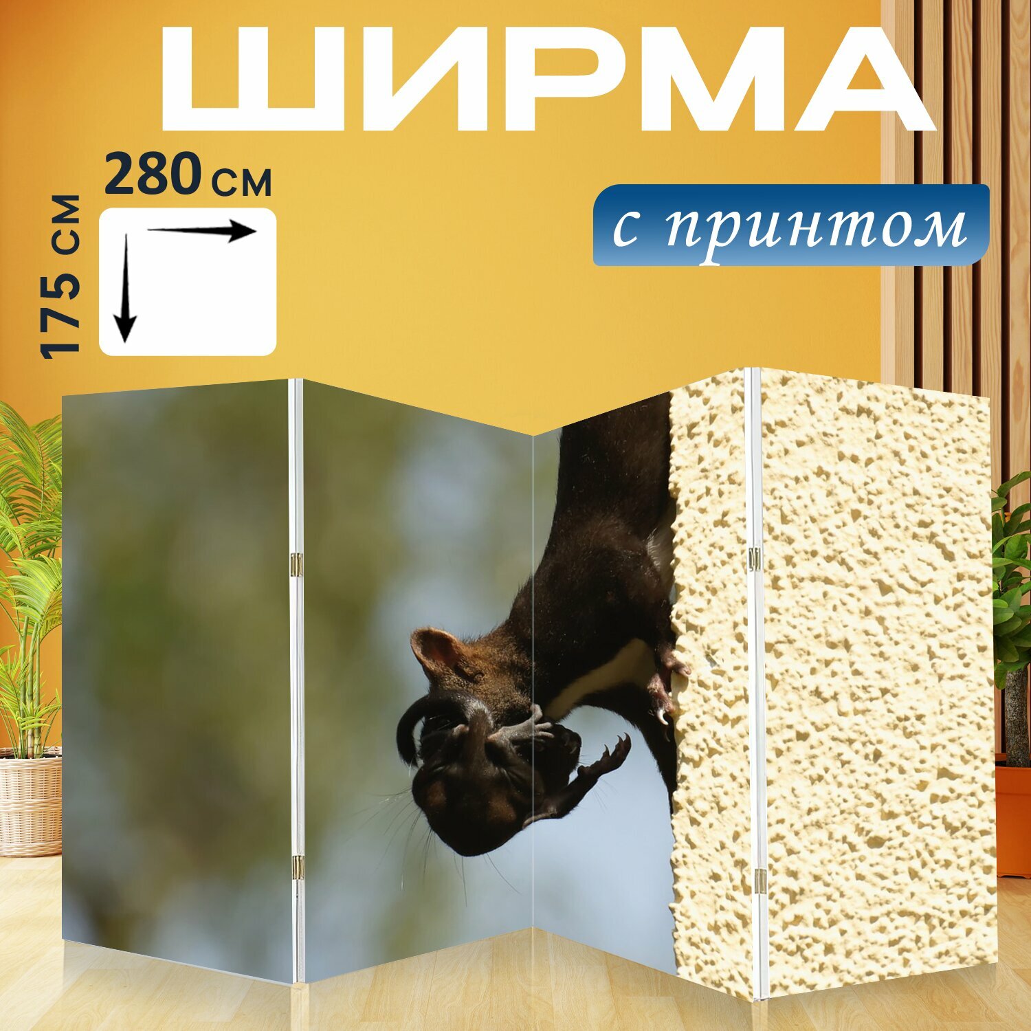 Ширма "Белка, мама, младенец" перегородка для зонирования комнаты с принтом 280x175 см. на холсте информация: