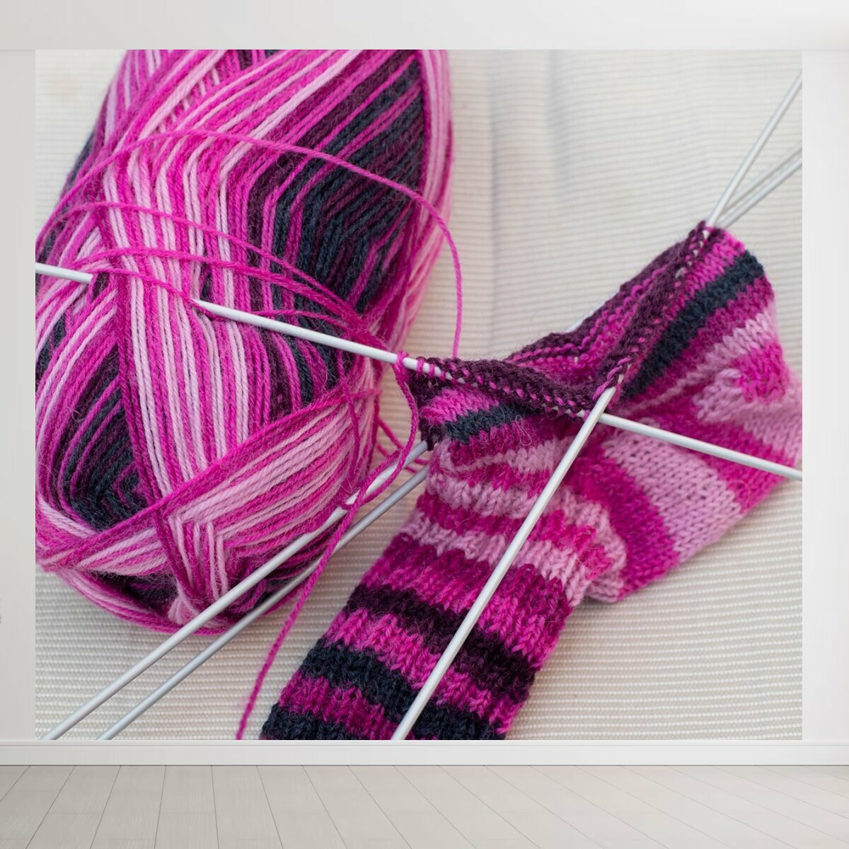 10 цен на Фотообои ударопрочные моющиеся "Трикотаж, чтобы вязать, носки" 300x270 см. флизелиновые на стену