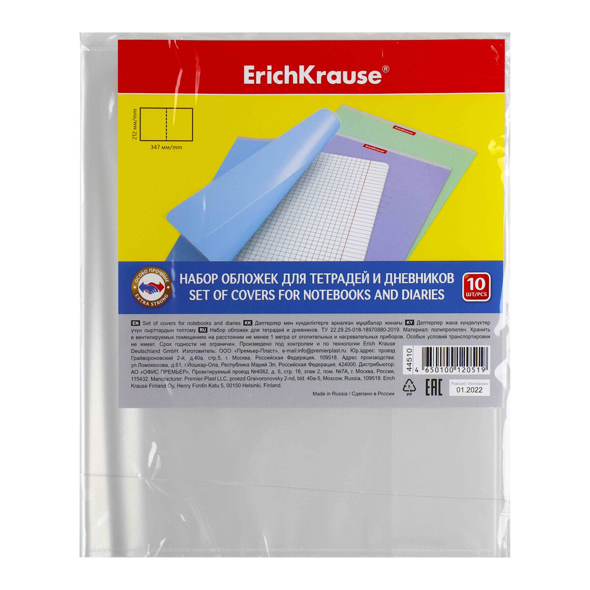 Обложки для тетради и дневника Erich Krause 10 шт, прозрачные, 50 мкм, 212х347 мм (44510)