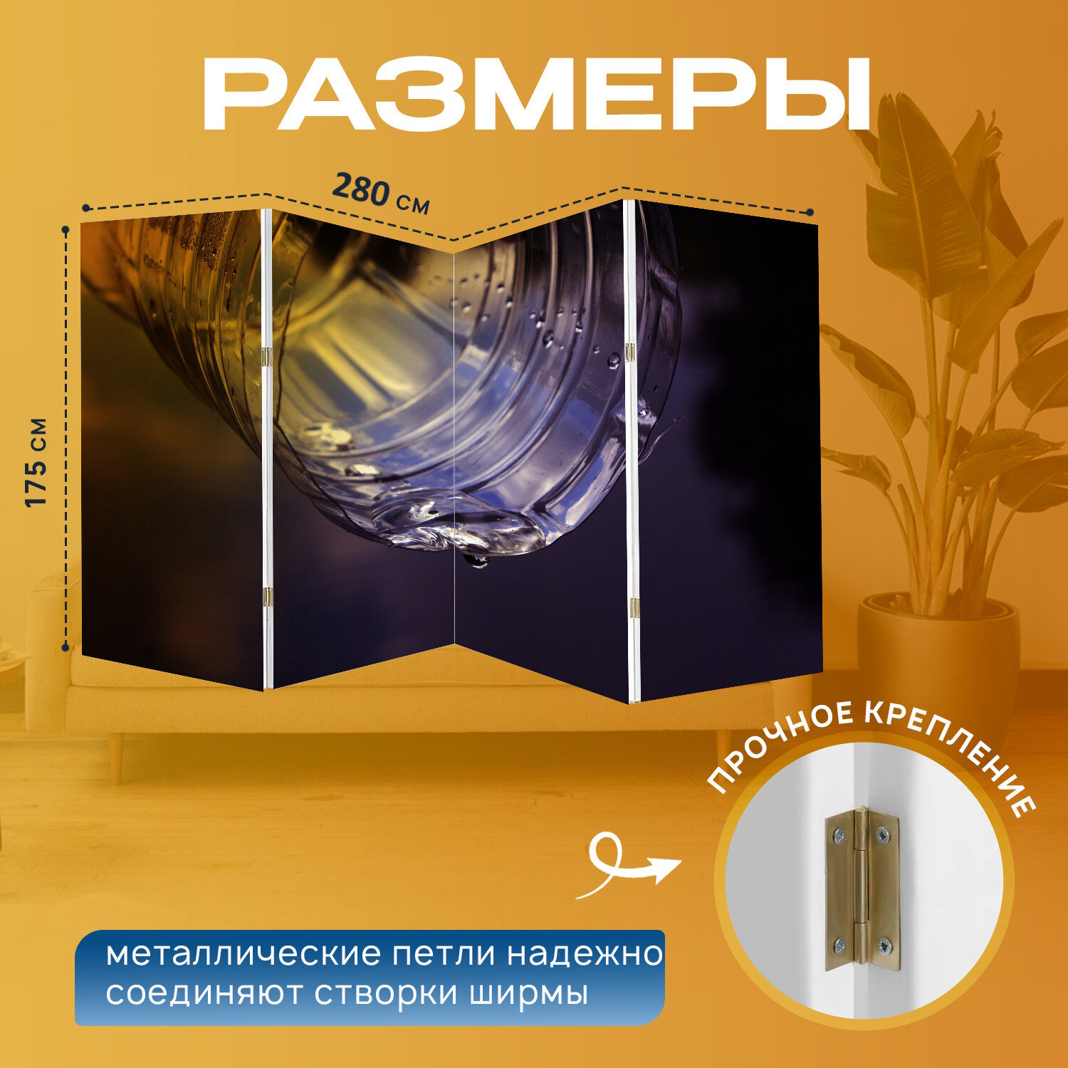 Отзывы на Ширма "Бутылка, вода, напиток" перегородка для зонирования комнаты с принтом 280x175 см. на холсте