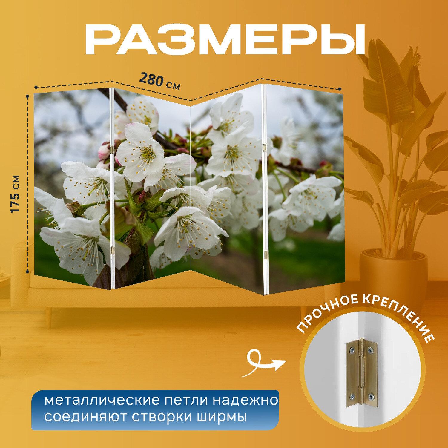 Отзывы на Ширма "Расцветает, белый, весна" перегородка для зонирования комнаты с принтом 280x175 см. на холсте