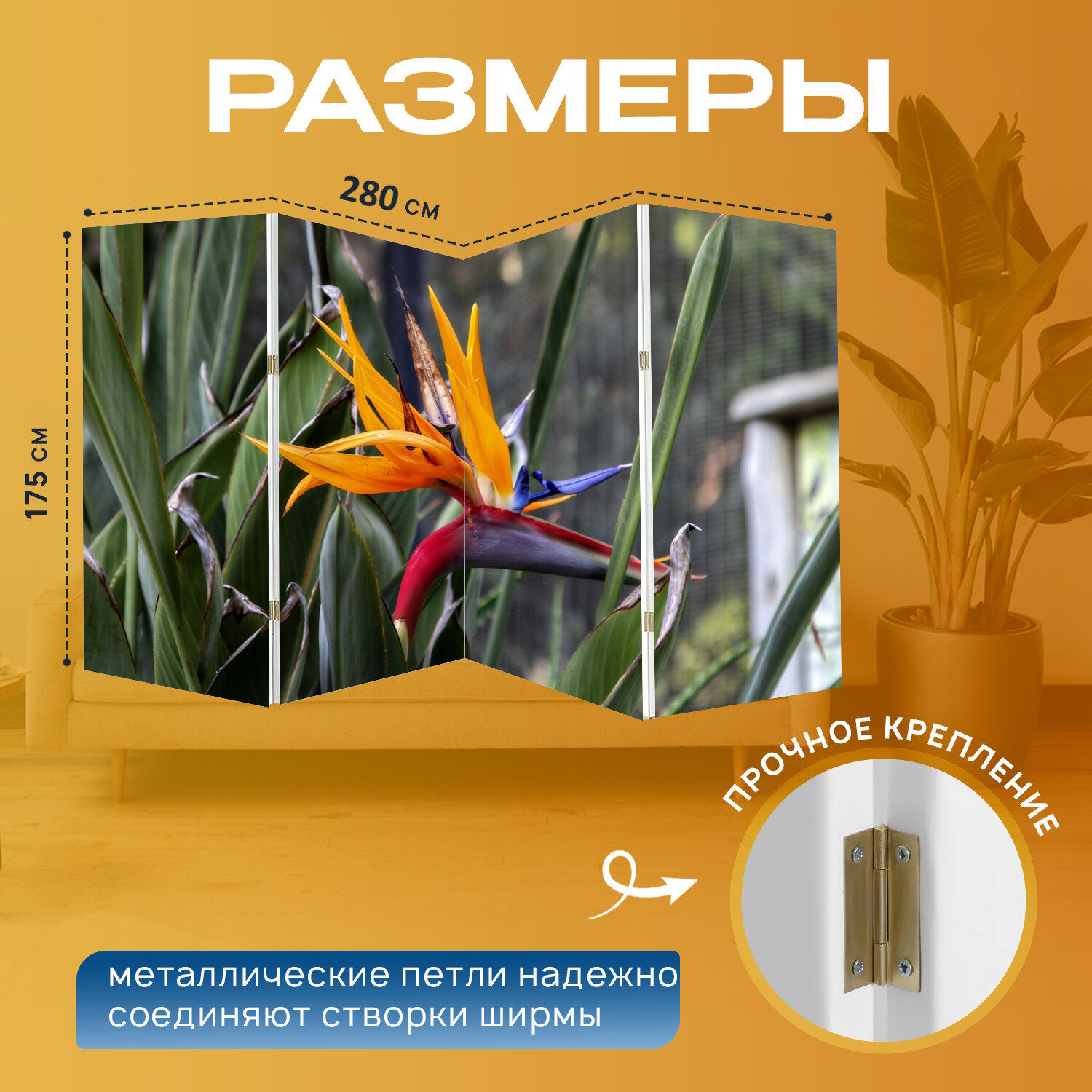 Отзывы на Ширма "Цветок, райская птица, блум" перегородка для зонирования комнаты с принтом 280x175 см. на холсте